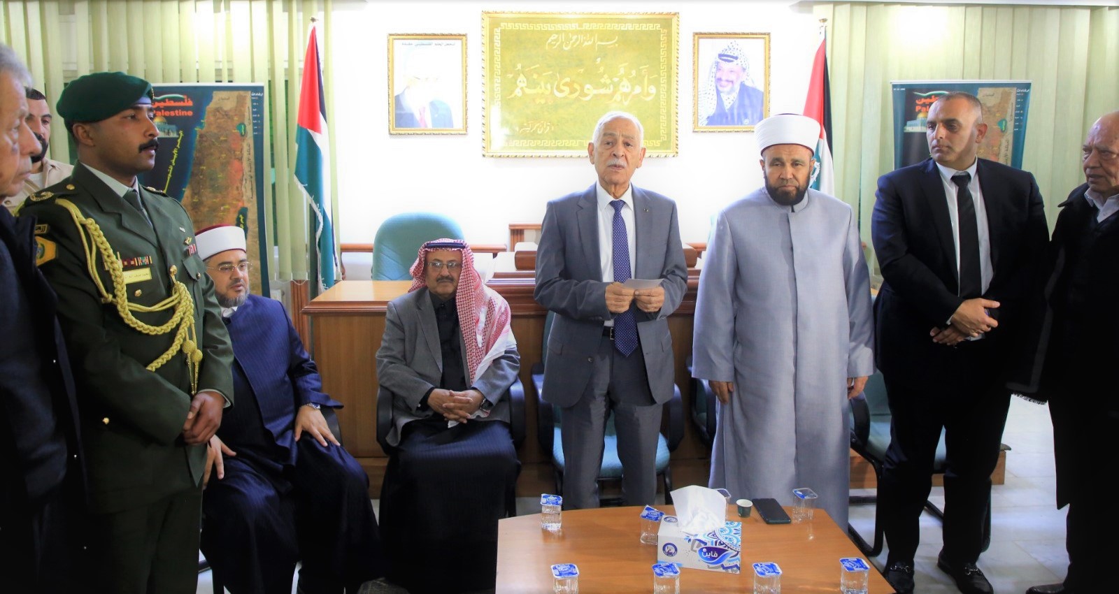 عمون - بتوجيهات من جلالة الملك عبدالله الثاني، قدم رئيس الديوان الملكي الهاشمي يوسف حسن العيسوي، اليوم الثلاثاء، واجب العزاء بوفاة وزير الدولة لشؤون الإغاثة في الحكومة الفلسطينية باسل ناصر. |