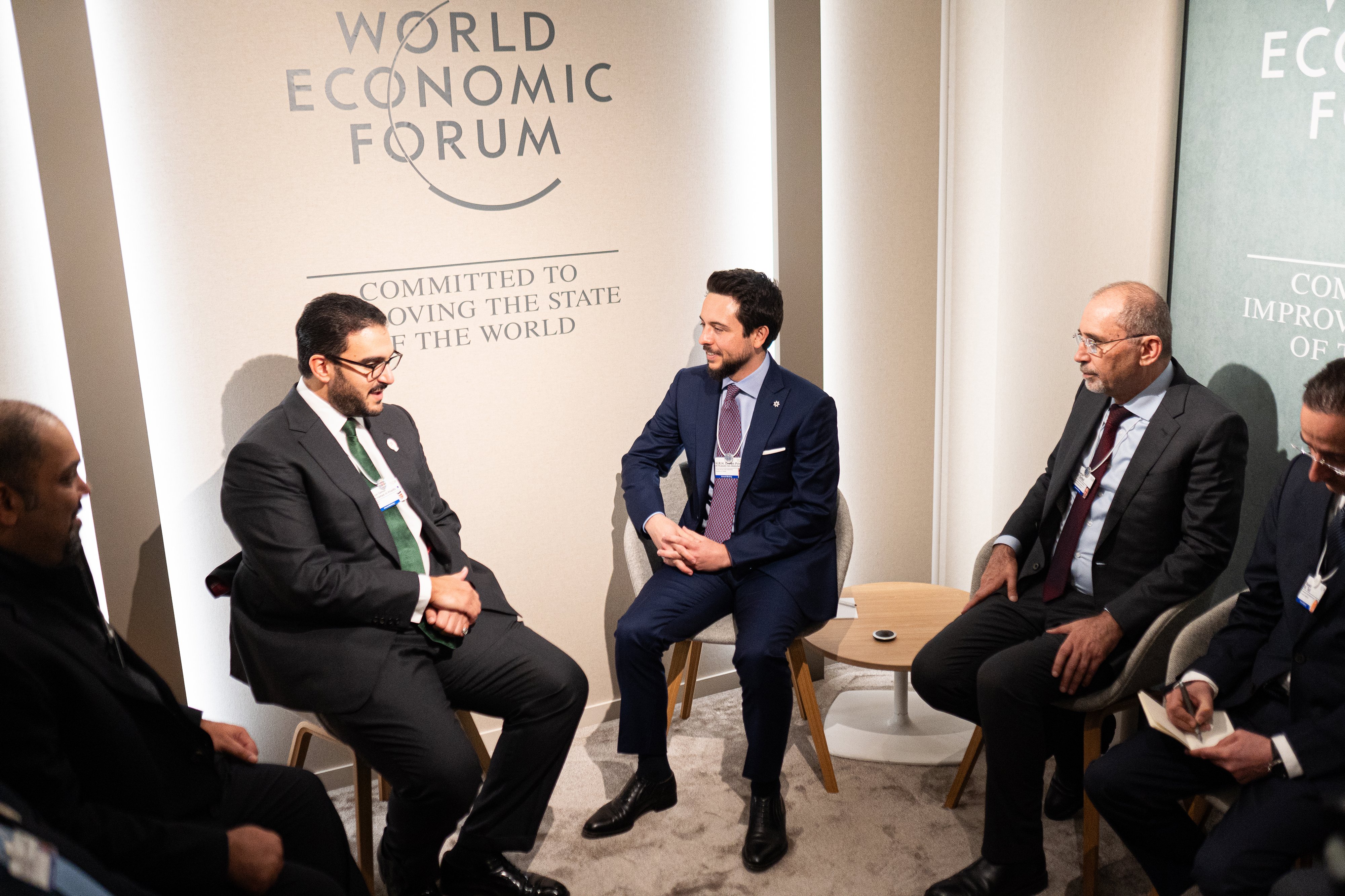 عمون - التقى سمو الأمير الحسين بن عبدالله الثاني ولي العهد، اليوم الأربعاء، سمو الشيخ عيسى بن سلمان آل خليفة، رئيس وفد مملكة البحرين المشارك في المنتدى الاقتصادي العالمي، رئيس مجلس أمناء وقف عيسى بن سلمان التعليمي الخيري، رئيس مجلس إدارة صندوق العمل البحريني.