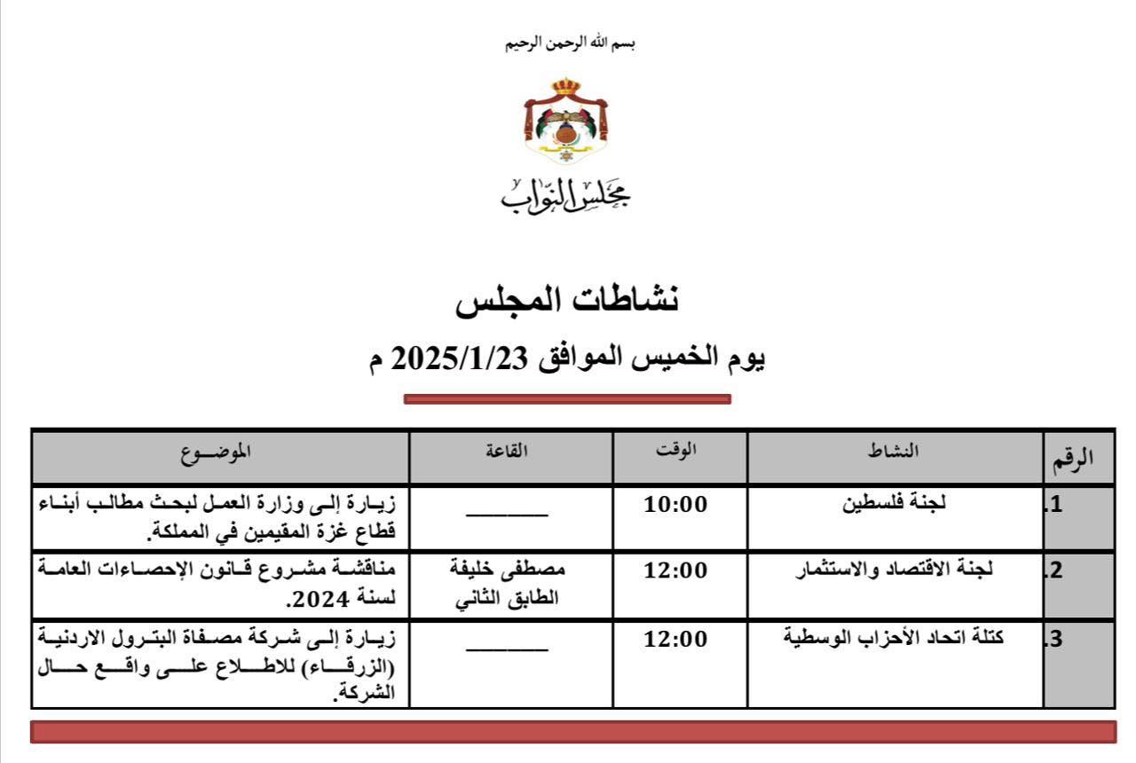 الاقتصاد النيابية تناقش الخميس مشروع قانون الإحصاءات العامة23-01-2025 07:31 AM
