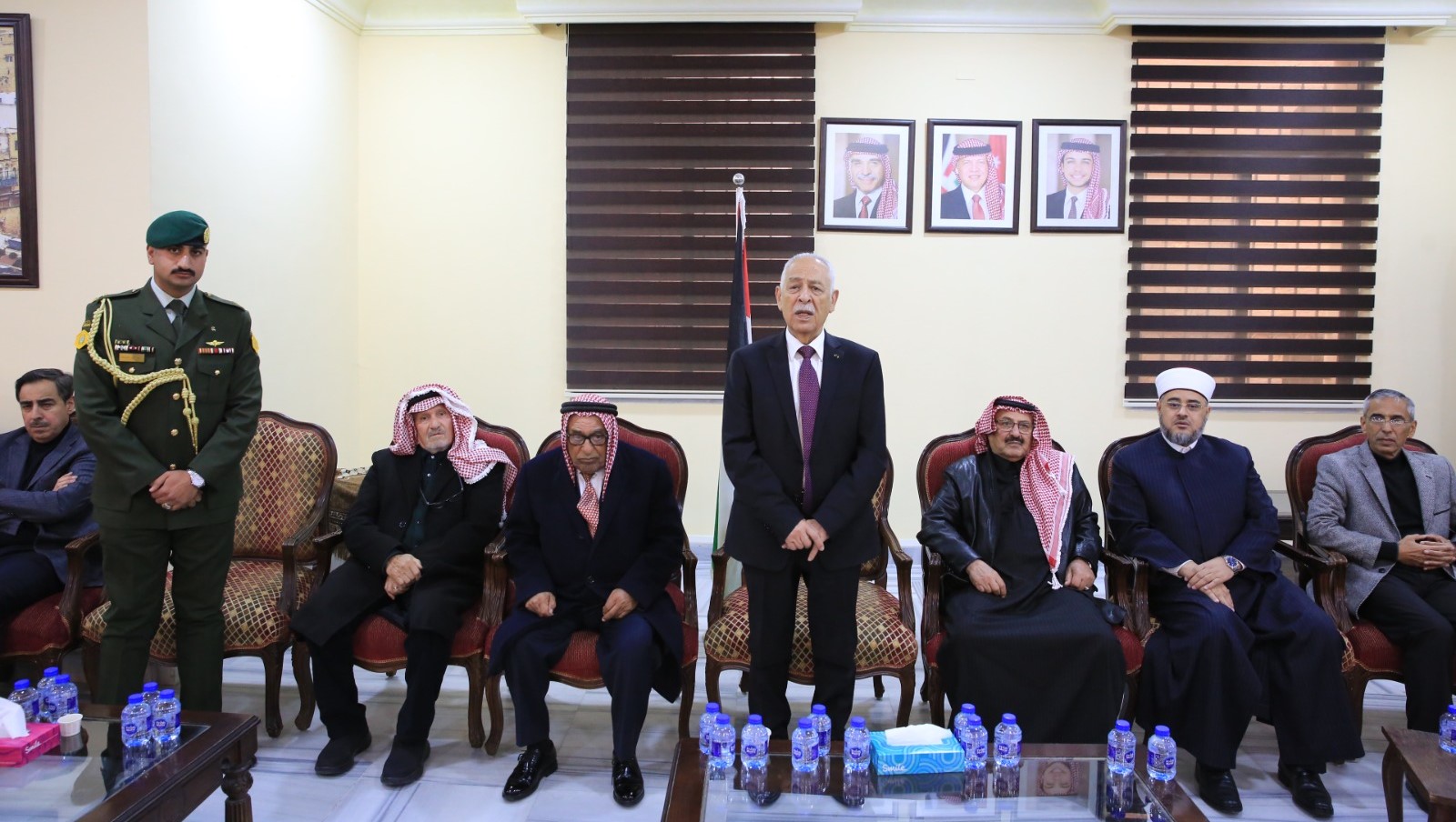 عمون - مندوبا عن جلالة الملك عبدالله الثاني، وسمو الأمير الحسين بن عبدالله الثاني، ولي العهد، قدم رئيس الديوان الملكي الهاشمي يوسف حسن العيسوي، اليوم الخميس، واجب العزاء إلى عشيرة النسور/ أبو العثم والعزب، بوفاة الحاجة حكمت عبدالرزاق العزب، زوجة القاضي الأسبق عبدالرزاق أبو العثم، وإلى عشيرة الحياري، بوفاة لمياء موسى الحياري. |