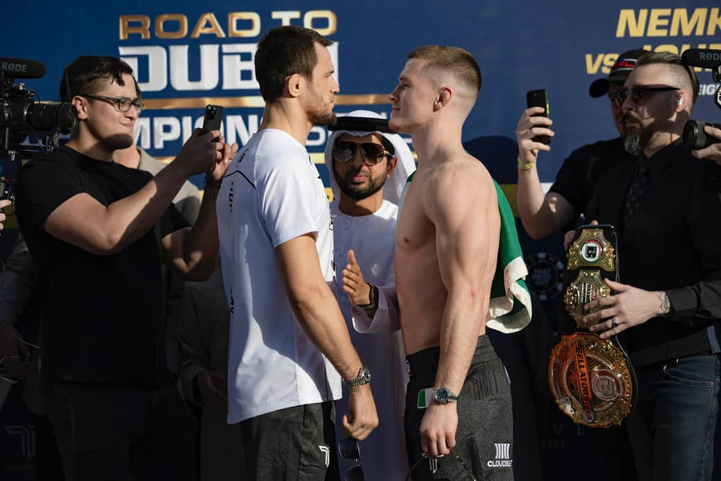وشهدت الفعالية أجواء حماسية مع صعود المقاتلين على الميزان أمام الجماهير، استعداداً للنزالات التي ستنطلق مساء السبت، حيث يتنافس 22 مقاتلاً من 13 دولة في 11 نزالاً مثيراً، ويتصدر الحدث النزال الرئيسي الذي يجمع البطل الروسي عثمان نورمحمدوف مع المقاتل الأيرلندي بول هيوز، في مواجهة منتظرة ضمن فئة الوزن الخفيف، وسط ترقب جماهيري كبير.
