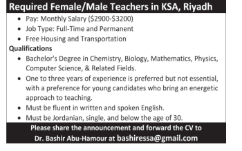 مطلوب معلمين ومعلمات للعمل في الرياض