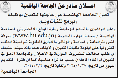 وظيفة شاغرة لدى جامعة الهاشمية
