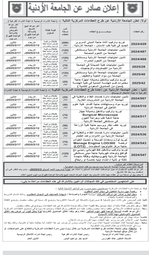 عطاءات صادرة عن الجامعة الاردنية