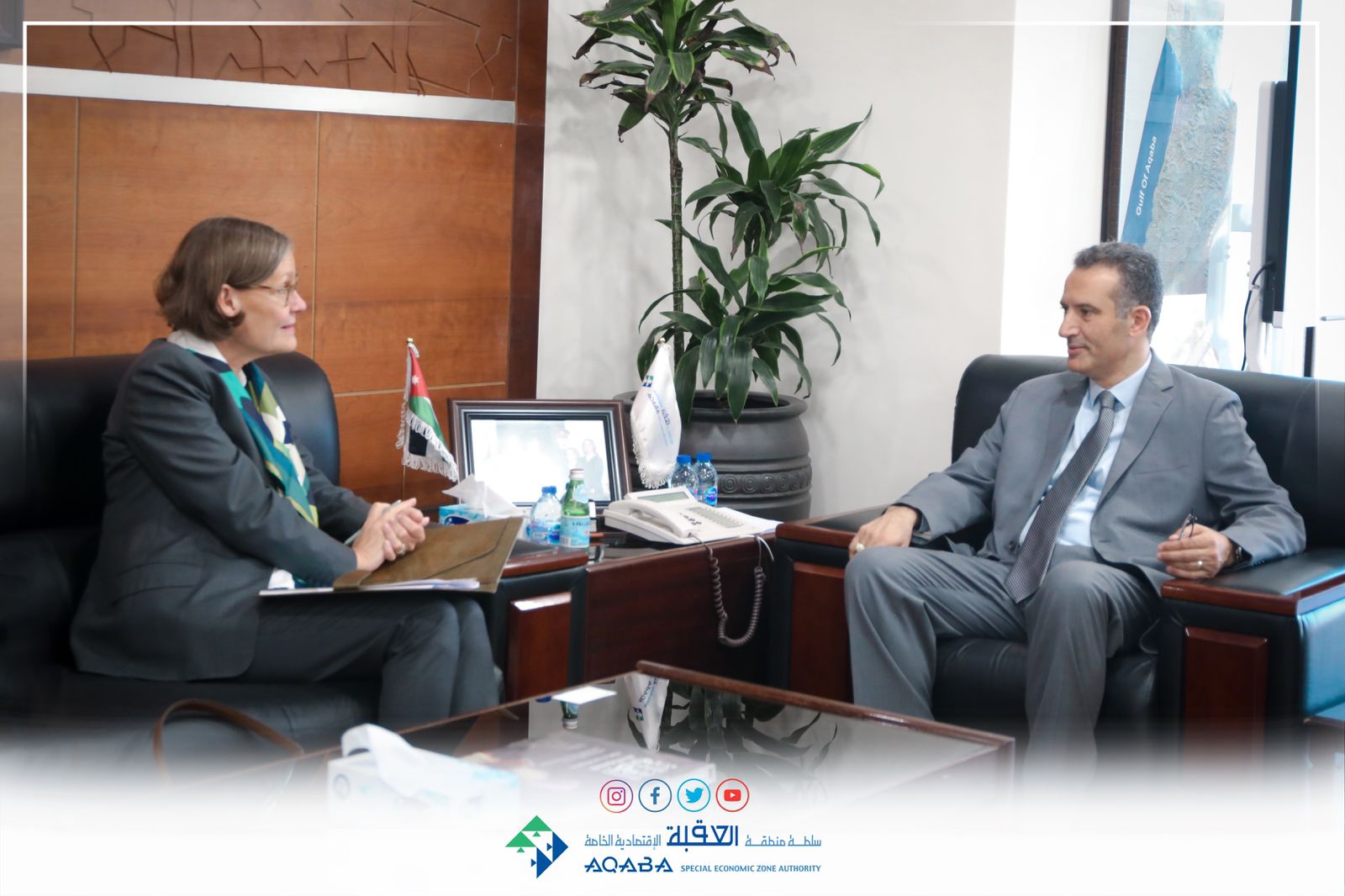 عمون - استقبل رئيس مجلس مفوضي سلطة منطقة العقبة الاقتصادية الخاصة، نايف حميدي الفايز، الإثنين، سفيرة المملكة السويدية لدى المملكة، ماريا سارجرين، في أول زيارة رسمية لها إلى مدينة العقبة.