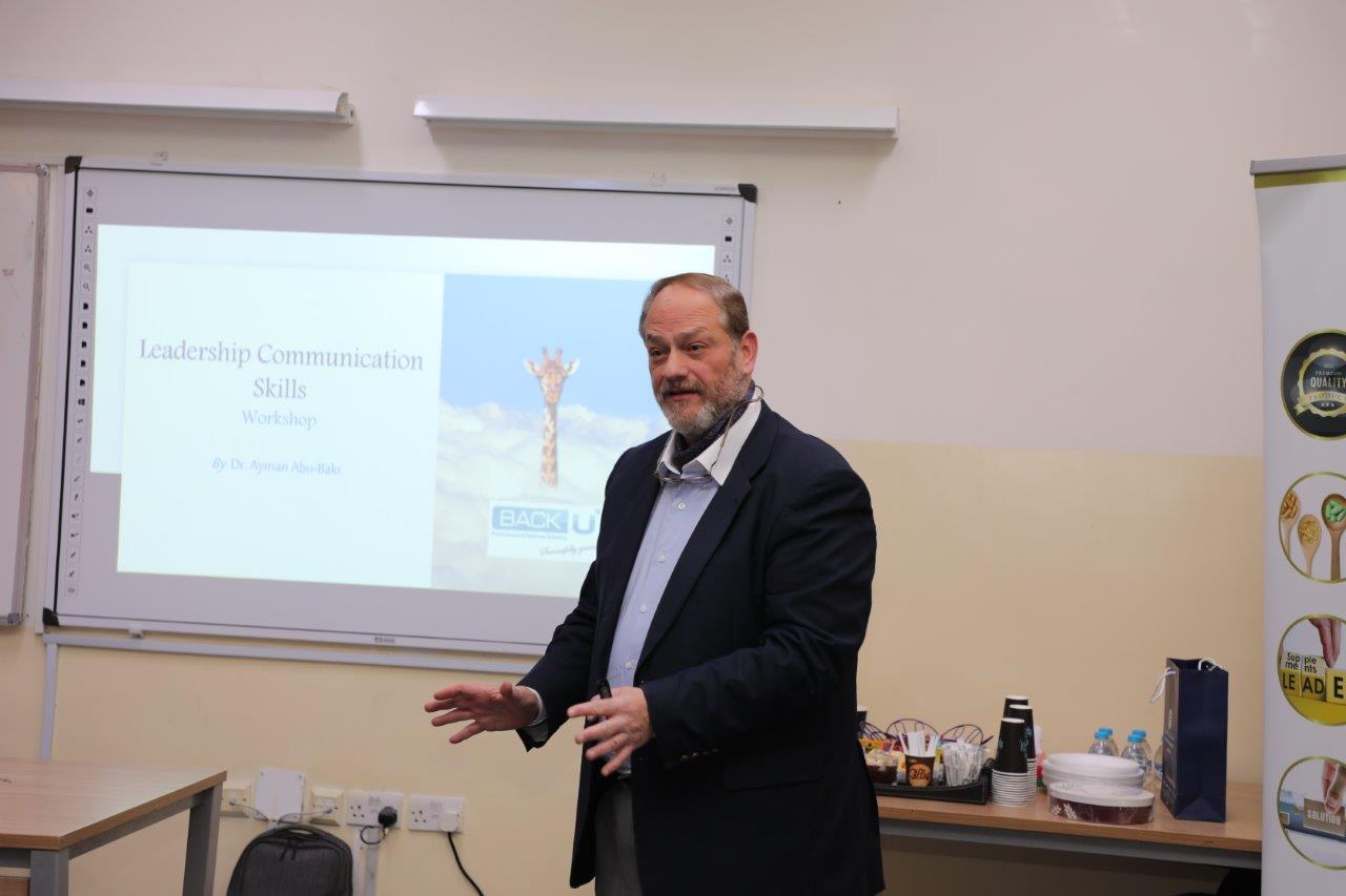 وأشارت الدكتورة أبو حويج في كلمتها الافتتاحية إلى أهمية تنمية مهارات القيادة والتواصل، مشيرةً إلى أن القيادة الفعّالة والتواصل المؤثر يشكلان الركيزة الأساسية للنجاح في المؤسسات الأكاديمية والمهنية، وأكدت أن إتقان مهارات التواصل يسهم في إعداد كوادر قادرة على تحقيق تأثير إيجابي ملموس في بيئات العمل، بما ينسجم مع الأهداف الاستراتيجية والرؤية الطموحة.