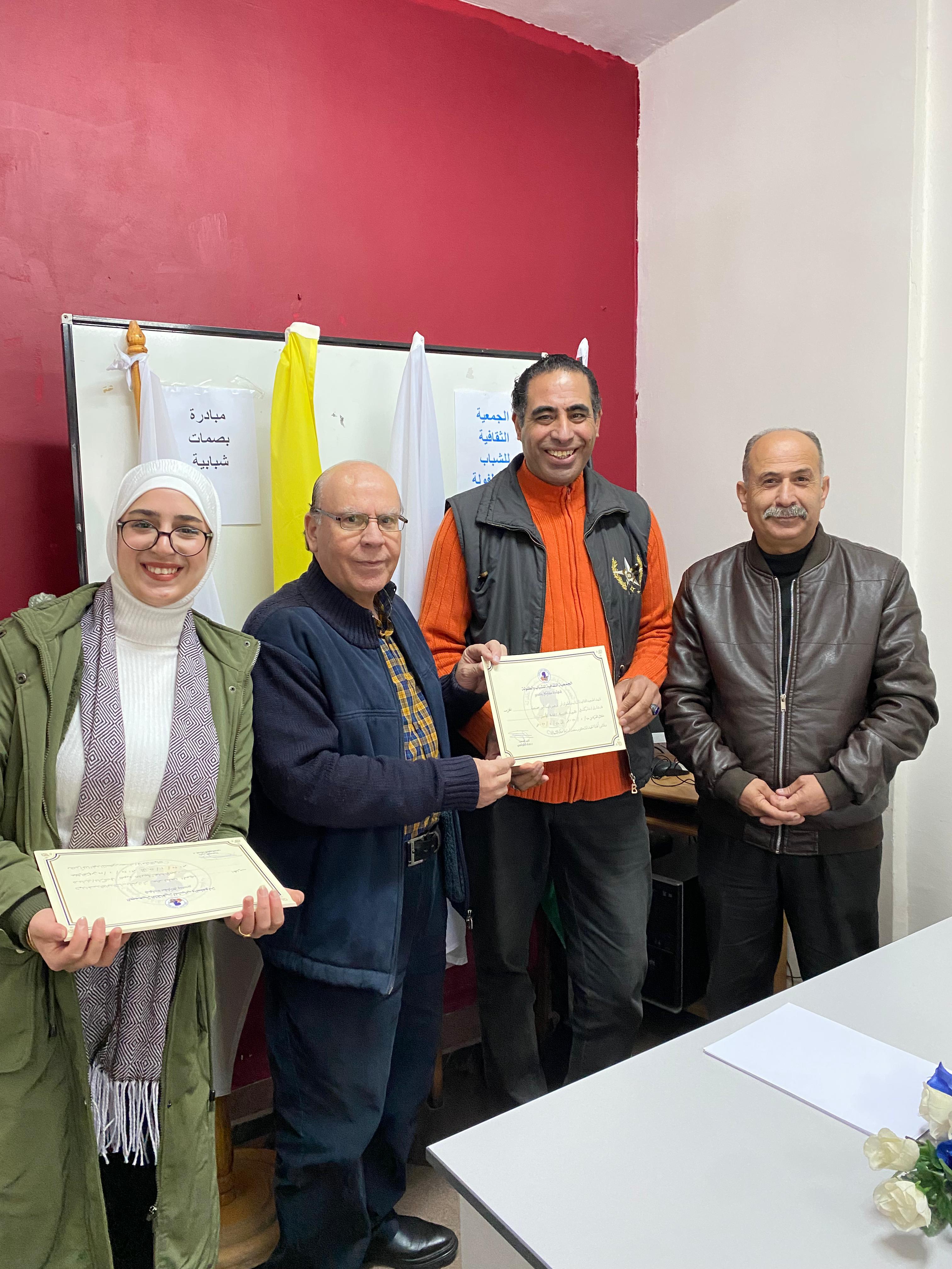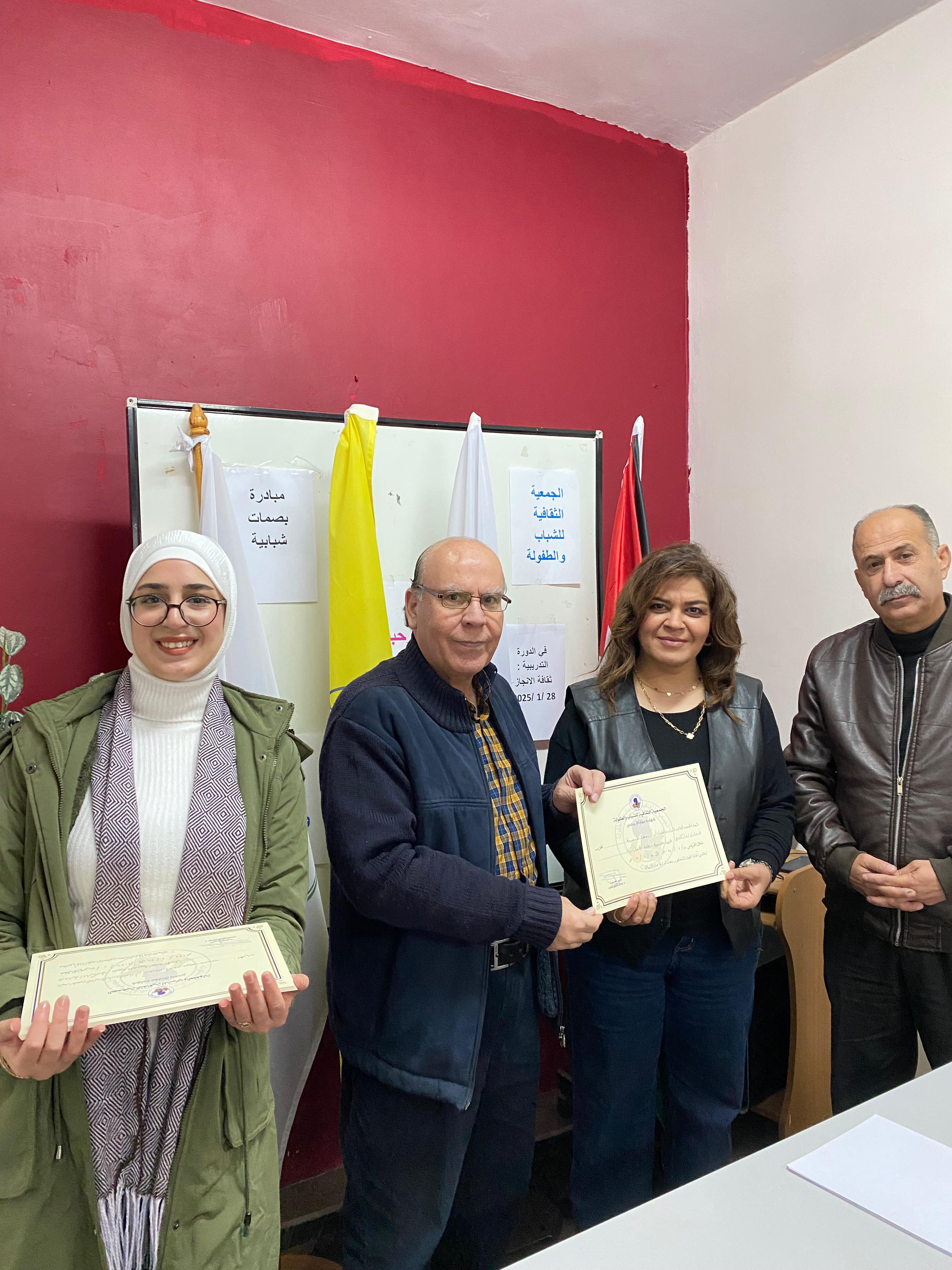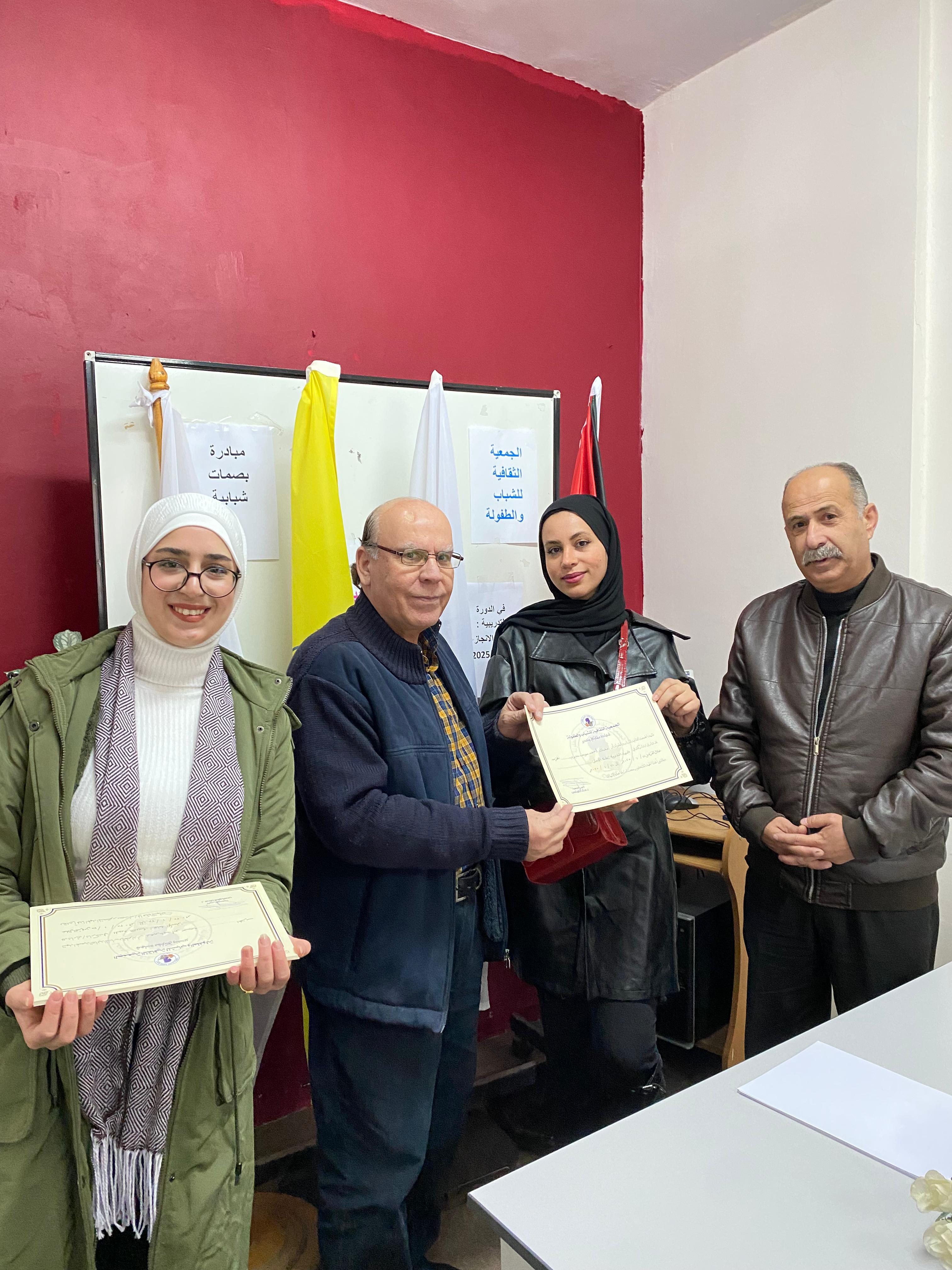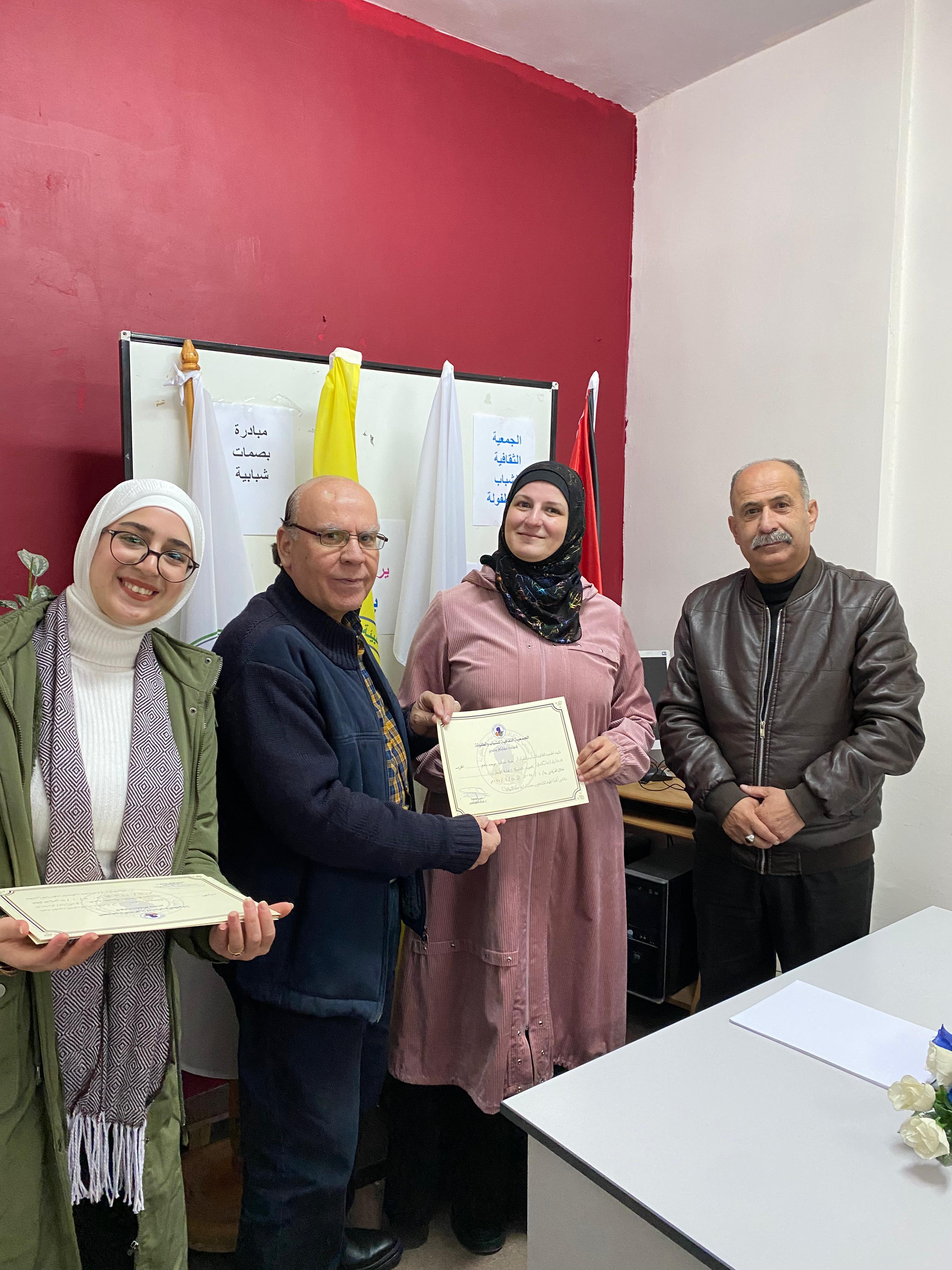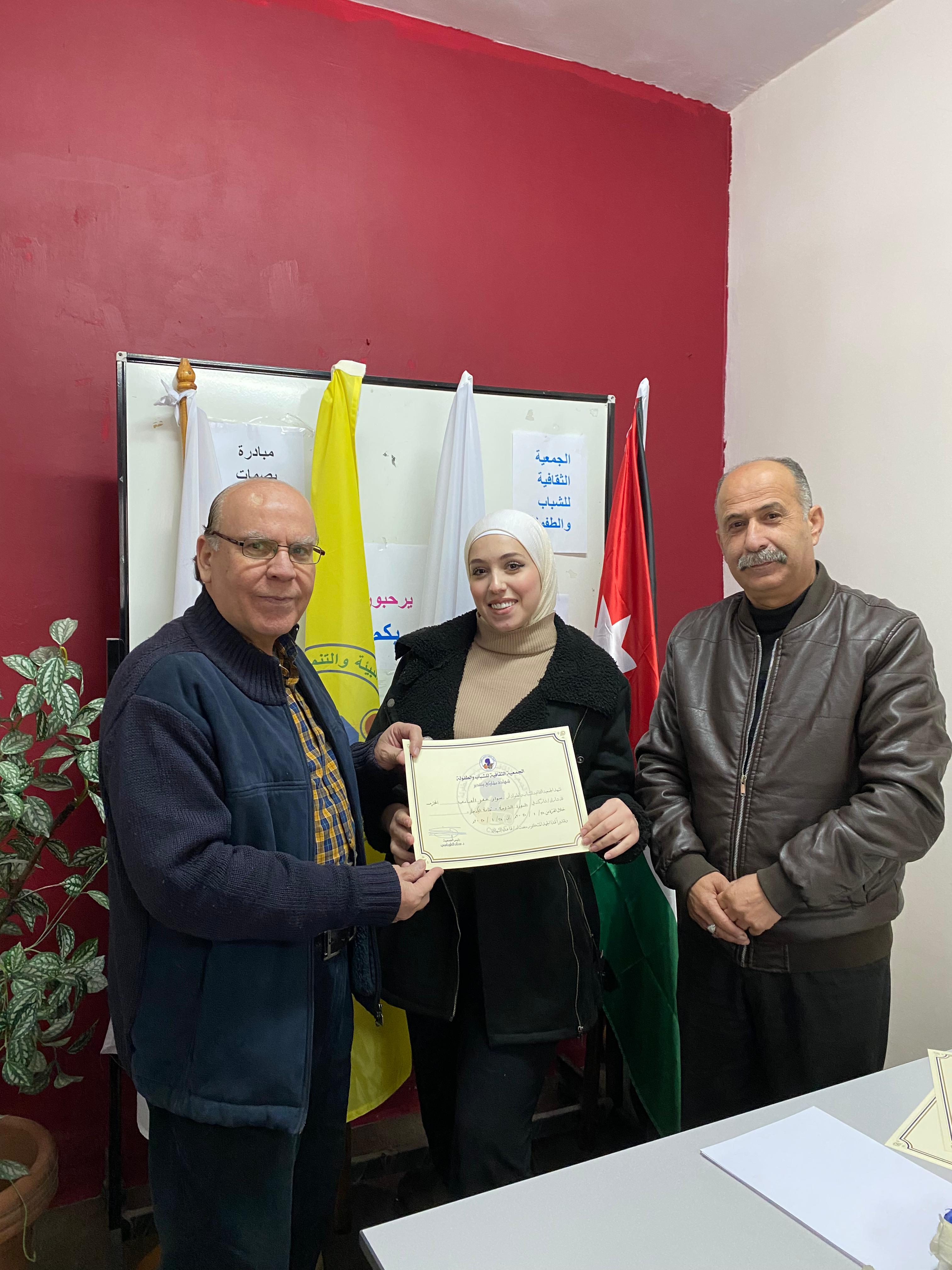 وختام اعمال الورشه التدريبية قام الدكتور عدنان الطوباسي رئيس الجمعية الثقافية للشباب والطفولة بتسليم المشاركين شهاداتهم التقديرية.