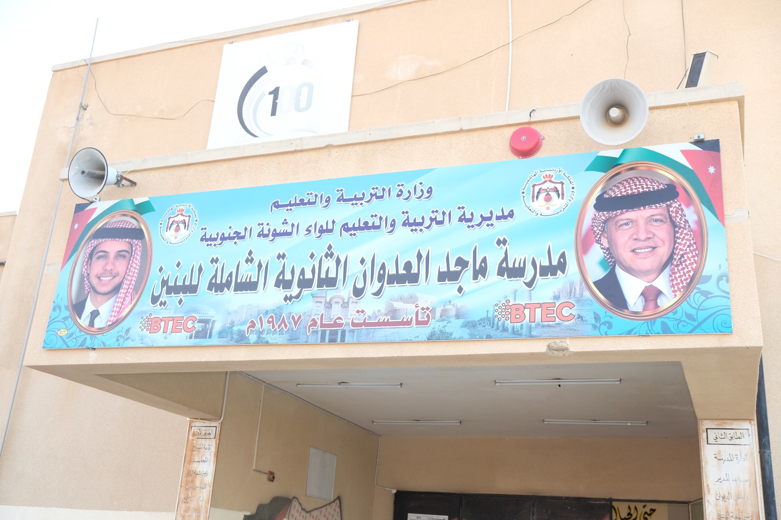 عمون - من شادي نبيل - تفقد مدير التربية والتعليم للواء الشونة الجنوبية الدكتور مازن هديرس، مدرسة ماجد العدوان الثانوية الشاملة للبنين للإطلاع على سير برنامج التعليم المهن (BTEC).