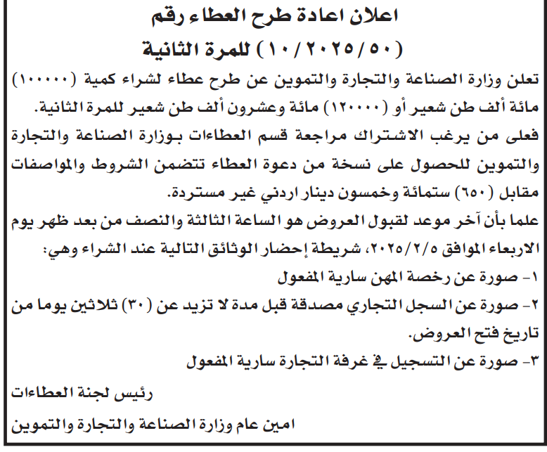 عطاء شراء "120"الف طن شعير