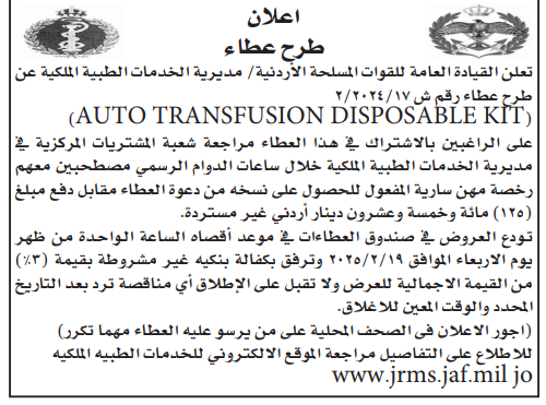 عطاء صادر عن الخدمات الطبية الملكية