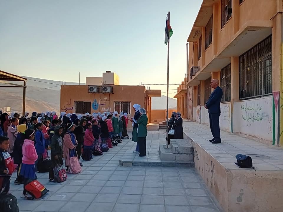 عمون - تفقد مدير التربية والتعليم لمنطقة الطفيلة الأستاذ عمران اللصاصمة فعاليات الطابور الصباحي في مدرسة سيل الحسا الثانوية المختلطة ضمن الجولات التفقدية . |