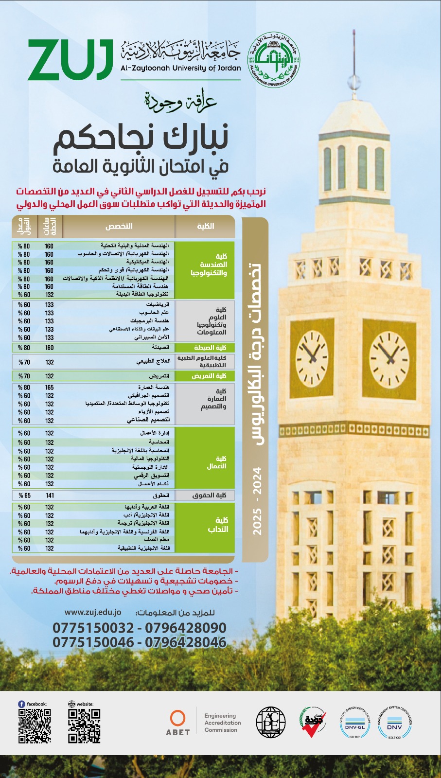 جامعة " الزيتونة " تبارك للطلبة الناجحين بالثانوية العامة