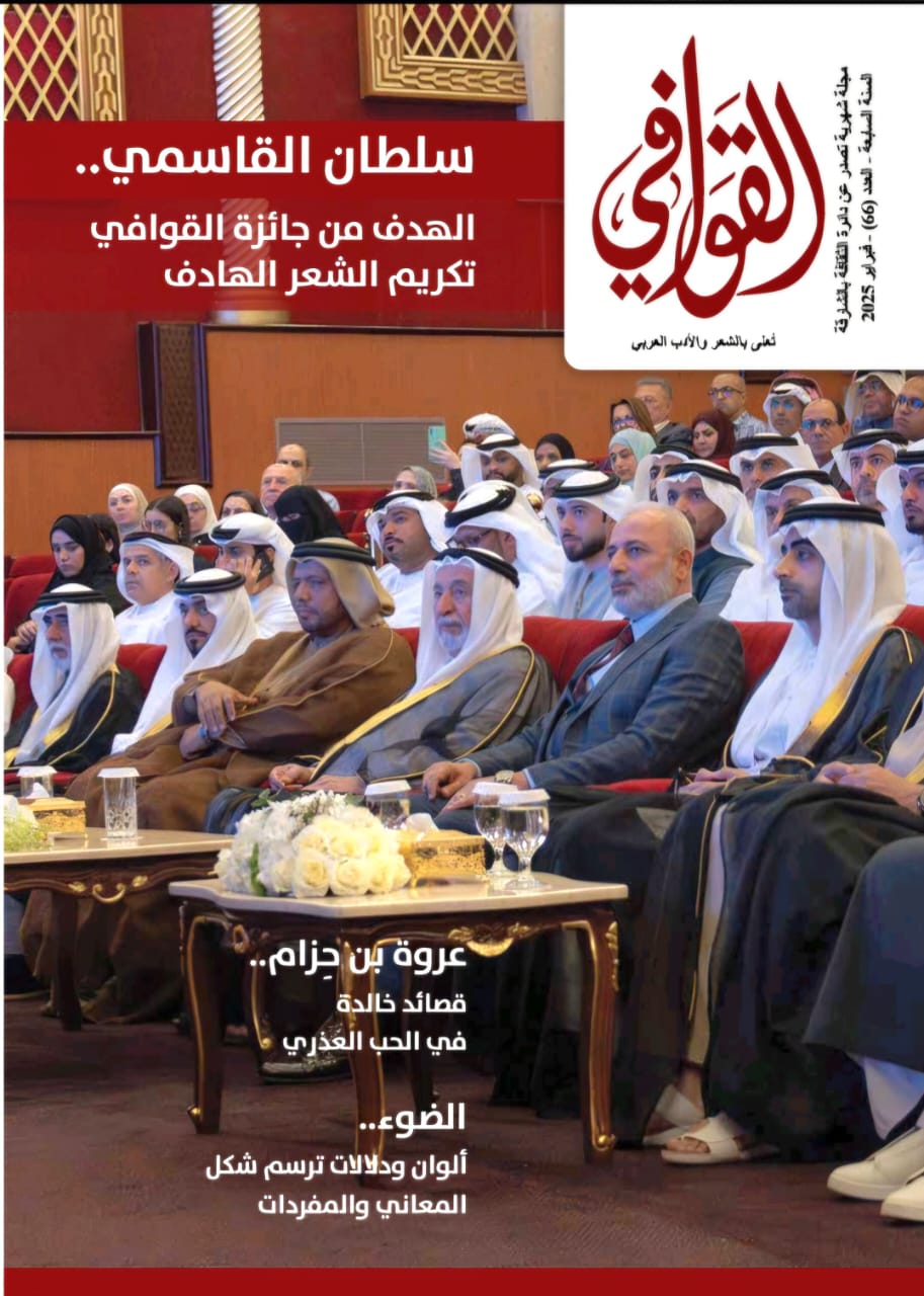 عمون - صدر عن "بيت الشعر" في دائرة الثقافة بالشارقة العدد 66 من مجلة "القوافي" الشهرية؛ المتخصّصة بالشعر الفصيح ونقده - في عامها السابع- التي تحتفي بالمواضيع ذات الصلة به بلاغةً ولغةً وتراثًا. كما تحتفي بالشعراء من مختلف العصور.