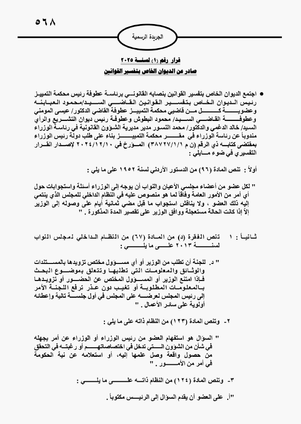 ديوان تفسير القوانين: لا يحق للنائب طلب ذكر الأسماء والوثائق02-02-2025 05:47 PM
