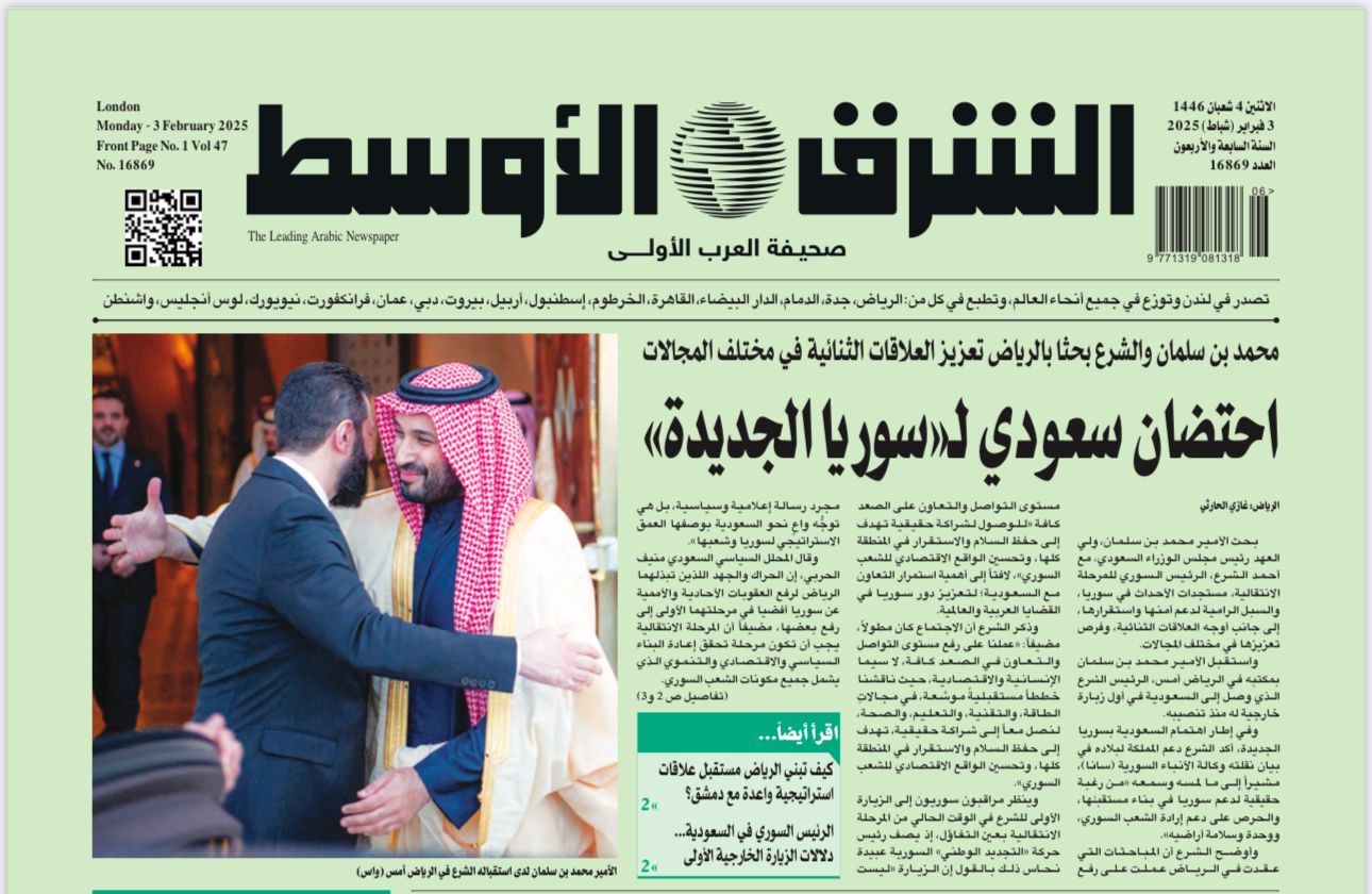 بين العناق والاحتضان .. هكذا رحبت الصحافة السعودية بلقاء الشرع بإبن سلمان03-02-2025 10:05 AM