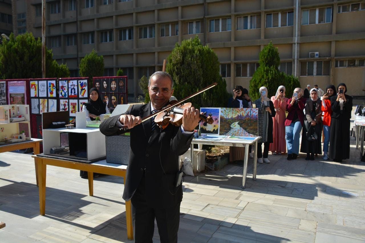 وأكد حرص الكلية على منح طلبتها الفرص للمشاركة في معارض فنية داخل الجامعة وخارجها، لعرض أعمالهم الفنية أمام الجمهور، والتفاعل مع فنانين محترفين، وتنظيم معارض دورية لمشاريعهم الفنية، وتنظيم الملتقيات الفنية، والمهرجانات المسرحية والموسيقية، وتشجيعهم على المشاركة في المسابقات الفنية محليا وخارجيا، مما يساعدهم في بناء خبرات مهنية تعزز من ثقتهم بأنفسهم.