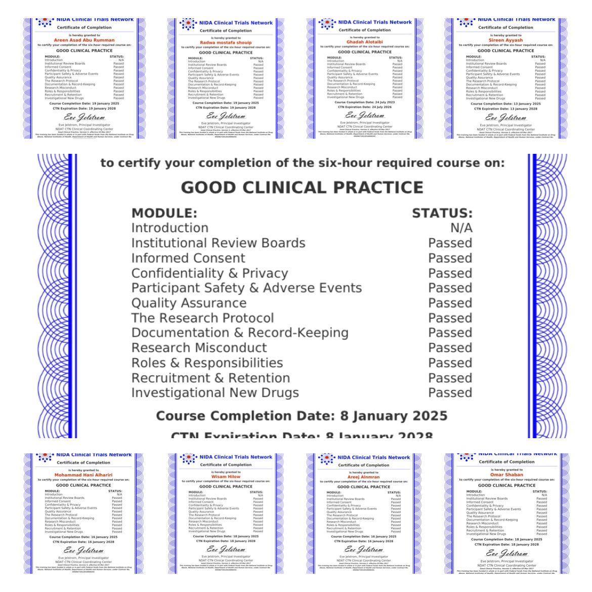 والجدير بالذكر بأن شهادة GCP المهنية تُعتبر معياراً دولياً يستند إلى مبادئ المجلس الدولي لتنسيق المتطلبات التقنية للأدوية المستخدمة على البشر، بالإضافة إلى لوائح القانون الفيدرالي الخاصة بالتجارب السريرية في الولايات المتحدة الأمريكية، حيث تضمن هذه الشهادة جودة وأخلاقيات الدراسات السريرية، وكذلك سلامة وحقوق المشاركين في البحوث السريرية.