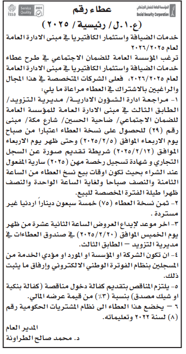 عطاءات صادرة عن المؤسسة العامة للضمان الاجتماعي