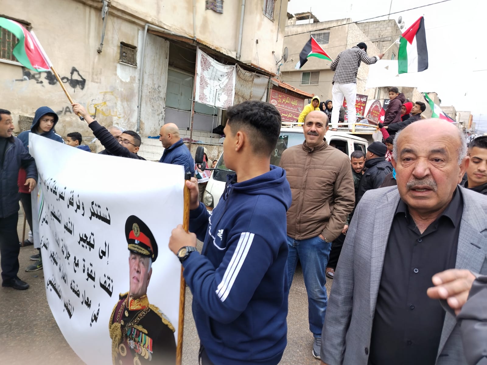 عمون - خرج المئات من أهالي مخيم البقعة، في مسيرة تضامنية، مع قطاع غزة، وتأييدًا لمواقف جلالة الملك عبدالله الثاني بن الحسين، إزاء التهجير. |