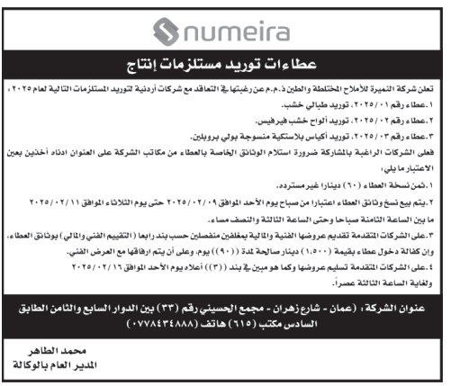 عطاء صادر عن شركة النميرة للاملاح المختلطة