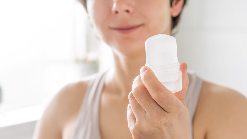 يعمل حجر الشبة كمزيل عرق طبيعي، عن طريق تثبيط نمو البكتيريا المسببة للرائحة، كما يساعد وضعه تحت الإبطين في الحد من رائحة الجسم الكريهة.