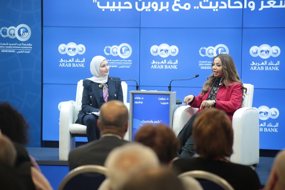 عمون - استضاف منتدى مؤسسة عبد الحميد شومان الثقافي، مساء الاثنين، الشاعرة والناقدة والإعلامية البحرينية الدكتورة بروين حبيب في لقاء بعنوان "شعر وأحاديث.. مع بروين حبيب"، بحضور عدد من الشعراء والكتاب والناشرين والمهتمين.