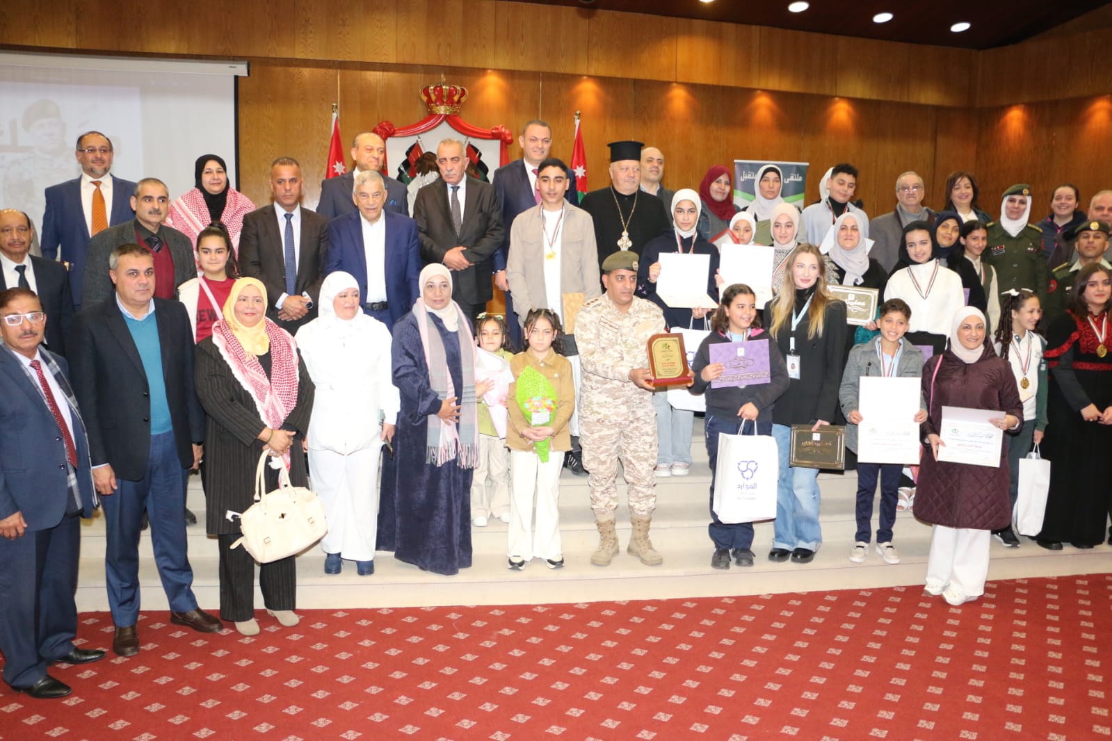 كما سلم الرواشدة دروع الجمعية التكريمية لأعضاء مجلس أمناء الجائزة وأعضاء لجان التحكيم ولرعاة وداعمي الجائزة .