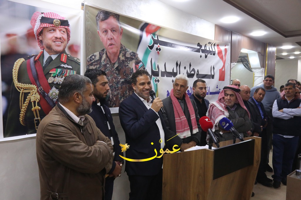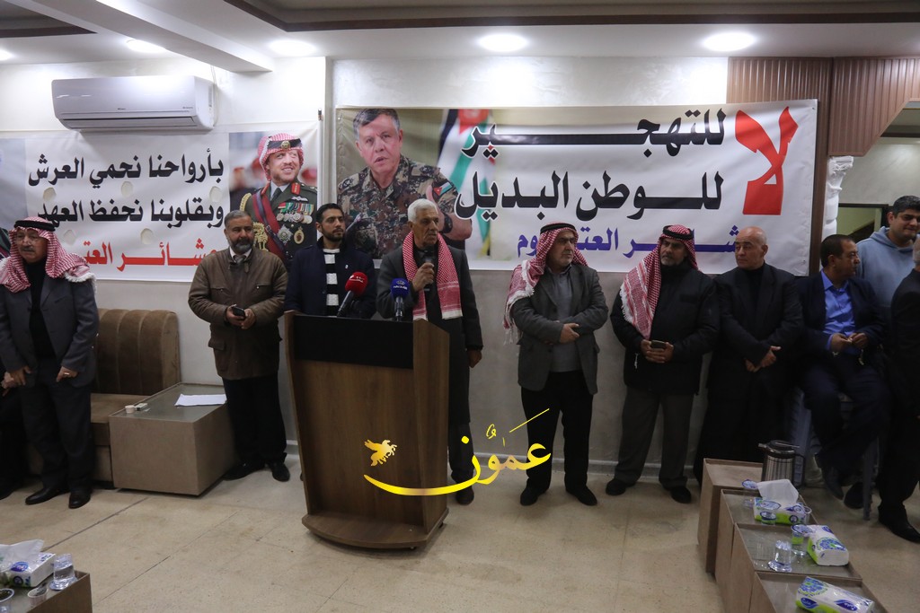 وفي ذات السياق، أكد رئيس بلدية جرش أحمد العتوم، ورئيس غرفة تجارة جرش علي الدندن، وعدد كبير من أبناء عشيرة العتوم على رفضهم التام لمشروع الرئيس الأمريكي دونالد ترامب، والذي يسعى لتهجير الفلسطينيين من أرضهم إلى الأردن ومصر، ومعتزين بموقف الملك الذي يرفض اللاءات الثلاث (لا للتهجير، لا للتوطين، والقدس خط أحمر).