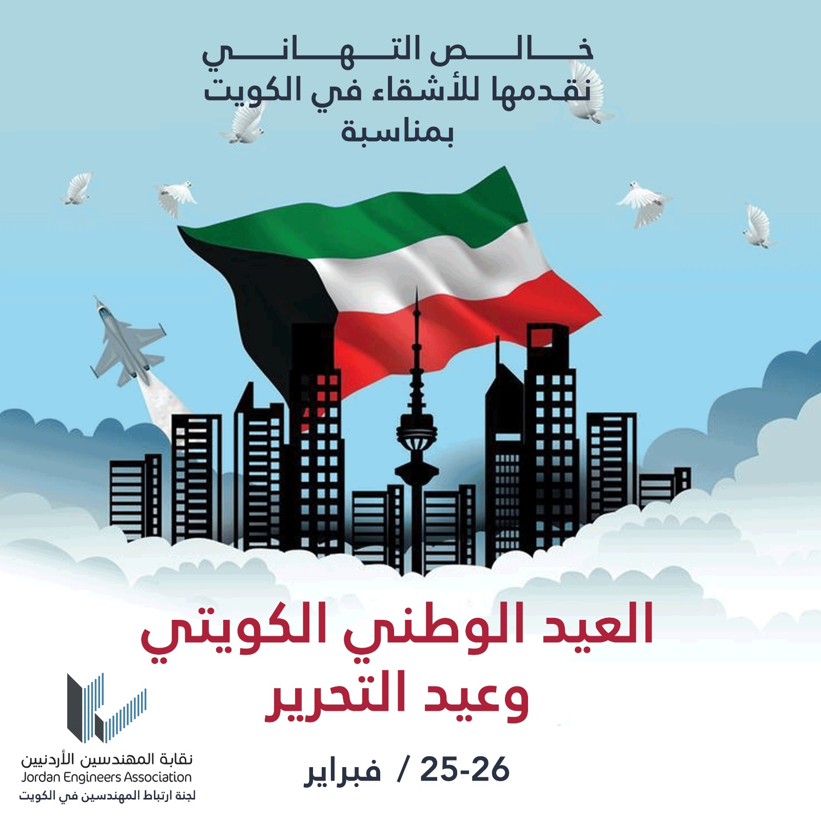 من الأردن، حيث القلوب تنبض إخاءً ومحبةً، تتقدّم لجنة ارتباط المهندسين الأردنيين في الكويت الحبيبة لكم بأصدق الأمنيات بدوام الأمن والازدهار، راجين أن تبقى الكويت منارةً مضيئةً في سماء التقدّم والعلم والتنمية.