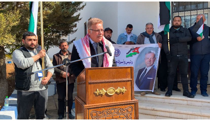 واستعرض للحضور باللغة الإنجليزية لما يَدور من مواقف دولية ودبلوماسية وسياسية وإعلامية لما طرحه الرئيس الأمريكي ترامب، مبينًا لِسِعة الحِنكة السياسية التي قدمها وأدارها جلالة الملك عبد الله الثاني ابن الحسين المعظم، ليوضح للعالم طريق القبول بالحل السياسي العربي.