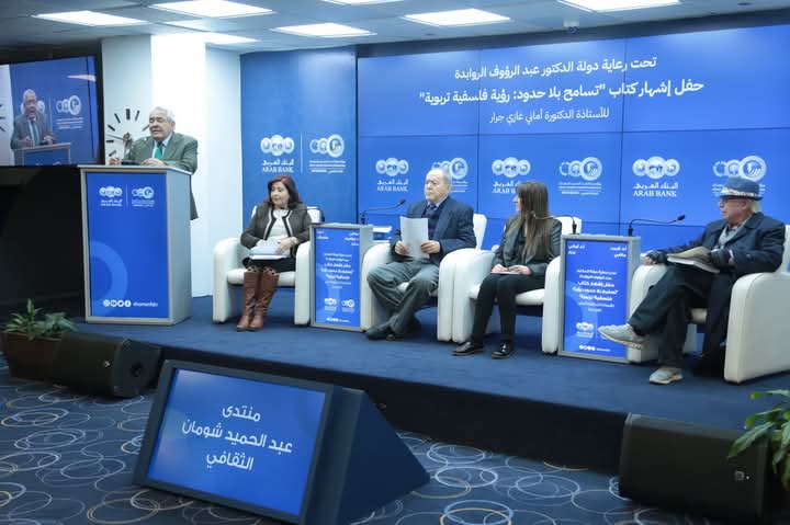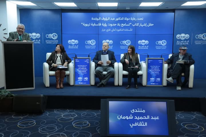 عمون - أشهرت الدكتورة أماني جرار، أمس، كتابها المعنون " تسامح بلا حدود: رؤية فلسفية تربوية"، وذلك خلال حفل أقيم في المنتدى الثقافي بمؤسسة عبد الحميد شومان، برعاية رئيس الوزراء الأسبق الدكتور عبد الرؤوف الروابدة.
