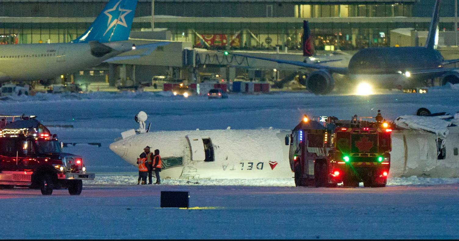 وتحطمت طائرة تابعة لشركة "دلتا" على متنها 80 شخصا خلال هبوطها الإثنين في مطار تورونتو بكندا وانقلابها، ثم انفجار نصف جسمها، بحسب سلطات المطار، في حادث أسفر عن 15 جريحا على الأقل.