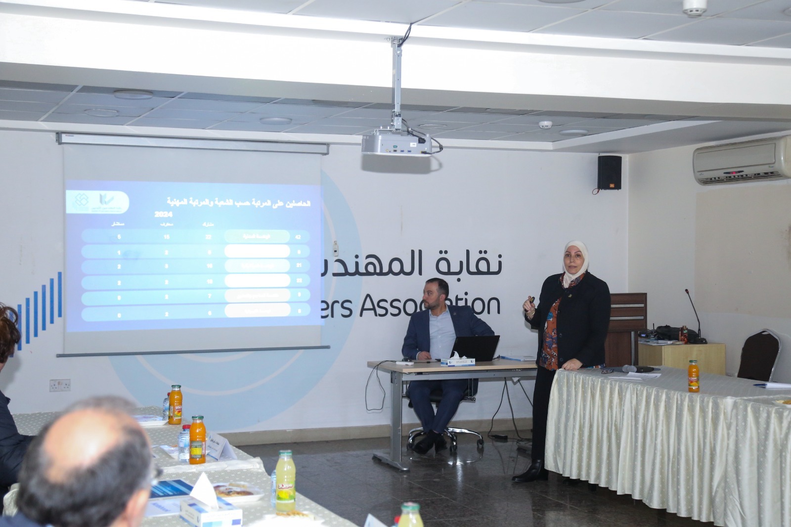 وقدمت مساعد الأمين لشؤون التدريب والتأهيل م. سمر الكيلاني عرضا مفصلا لما تم انجازه من قسم التأهيل والاعتماد المهني خلال 2024 والمقارنات مع 2023 من حيث عدد الحاصلين على المرتبة المهنية وتصنيفهم تبعا للشعب الهندسية والمراتب المختلفة، كما استعرضت كشف الممنوحين خلال 2024 واشارت ان اسماء الحاصلين على المراتب المهنية معلنة عبر موقع نقابة المهندسين وعبر منصة JEALEARN.