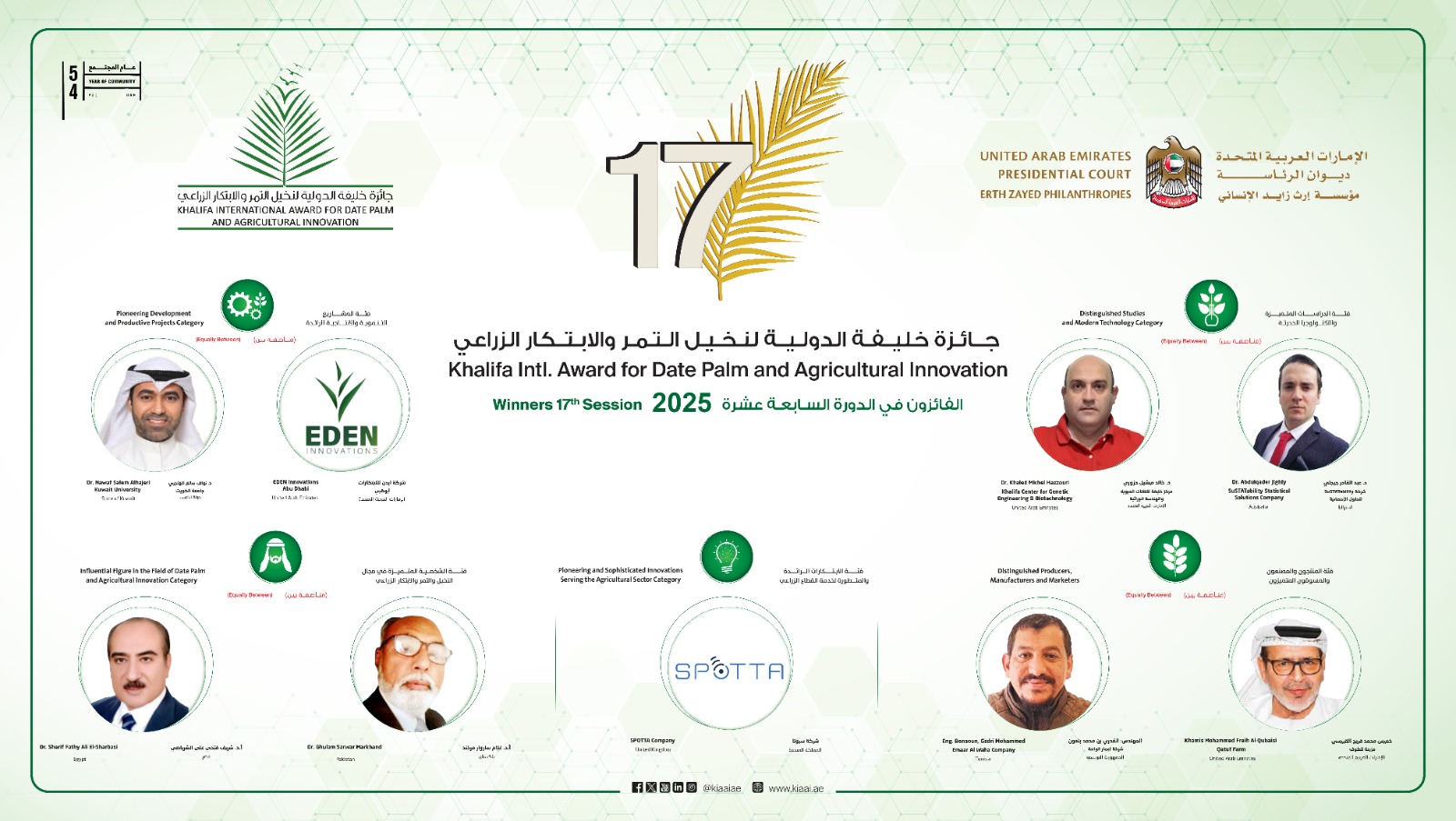 إعلان الفائزين بالنسخة 17 لجائزة خليفة الدولية لنخيل التمر والابتكار الزراعي