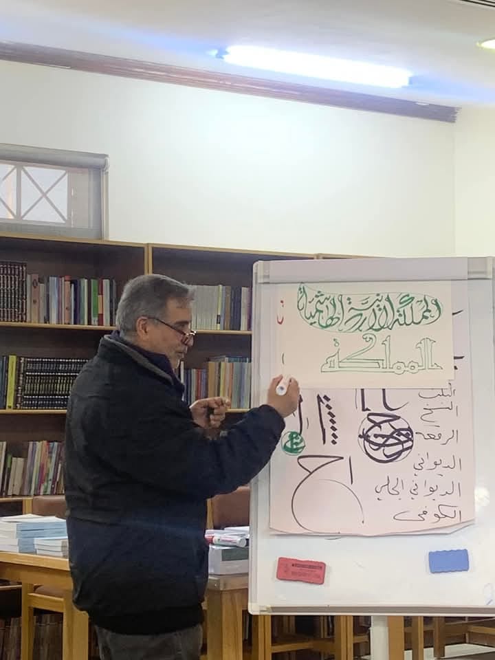 وشاهد المتدربين الذين أبدوا سعادتهم بإقامة مثل هذه الورش ، تعليمات رسم الحروف كما قدمها المدرب .