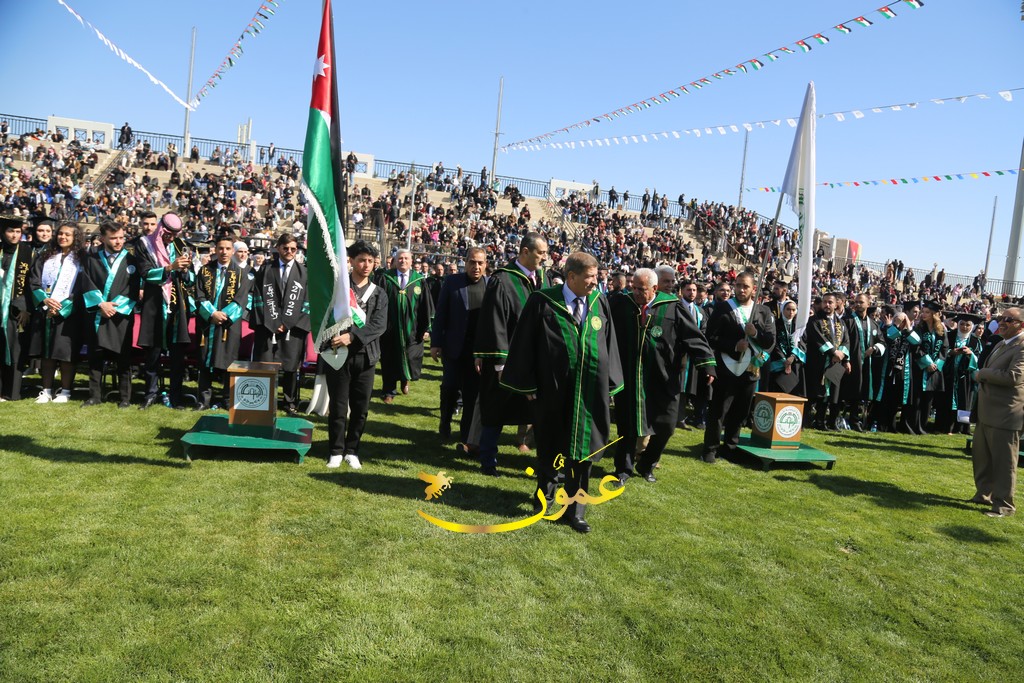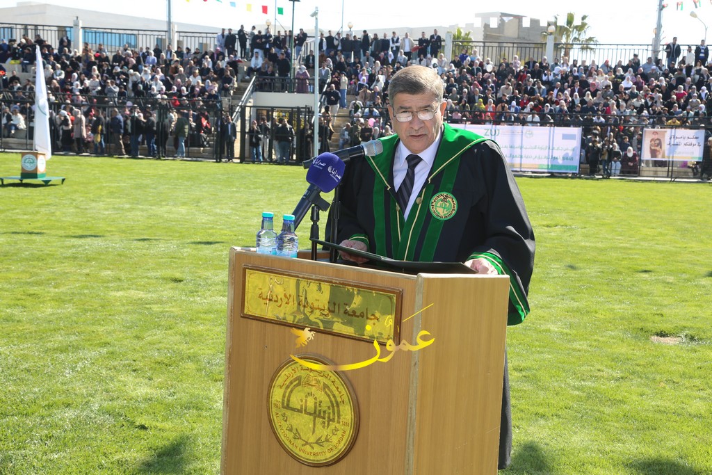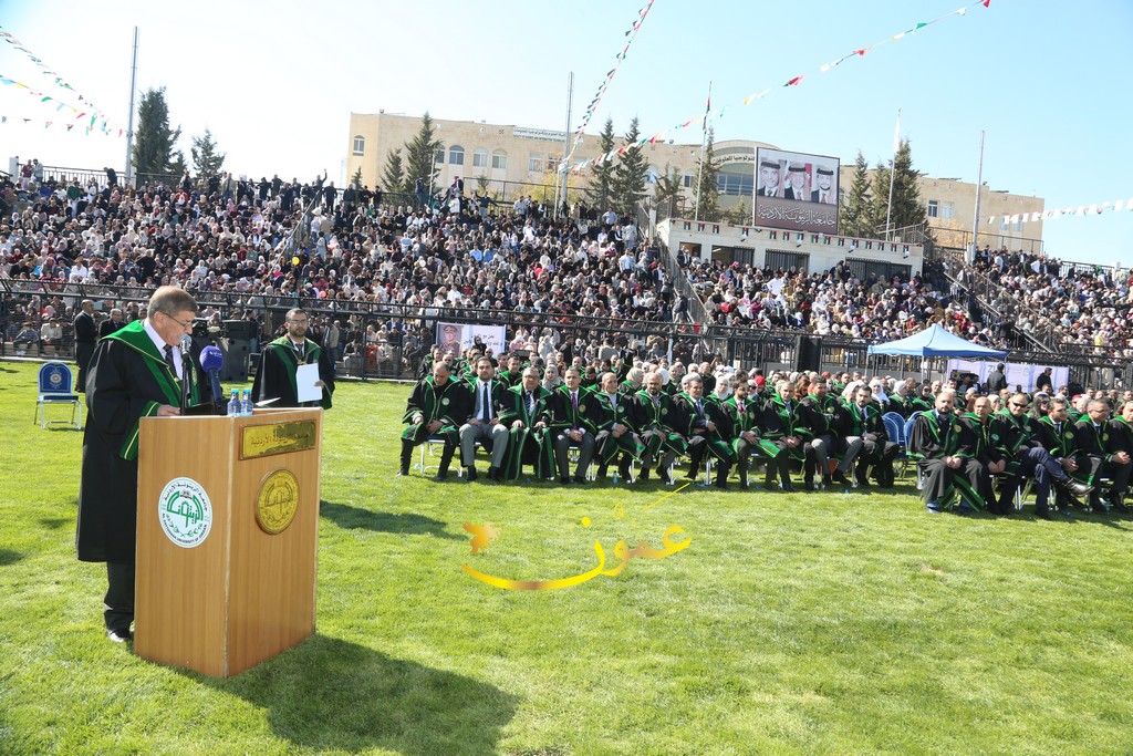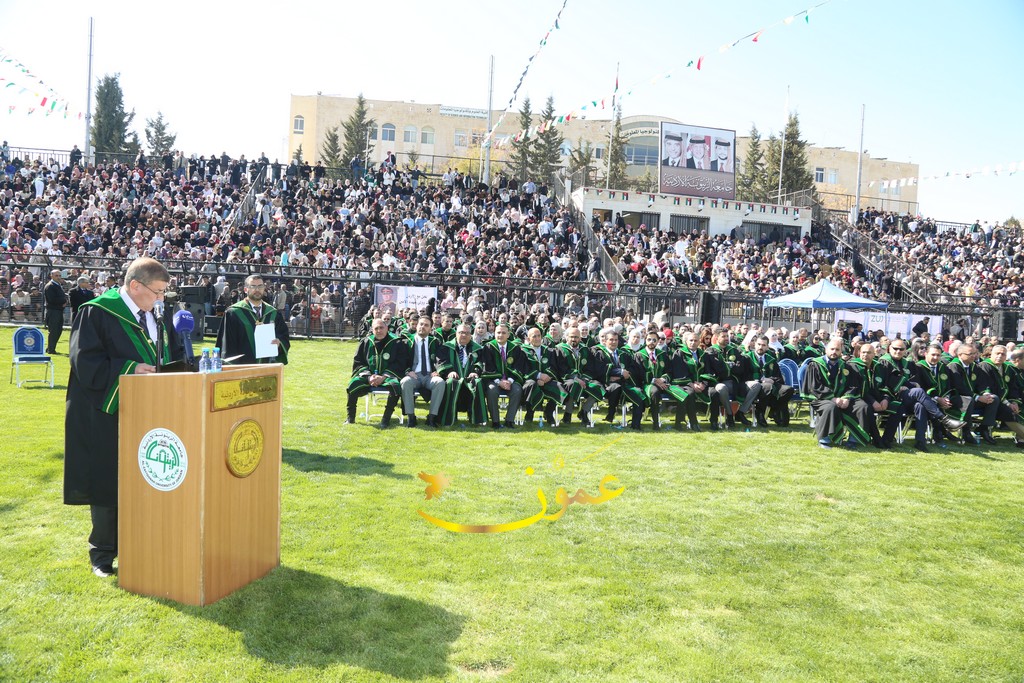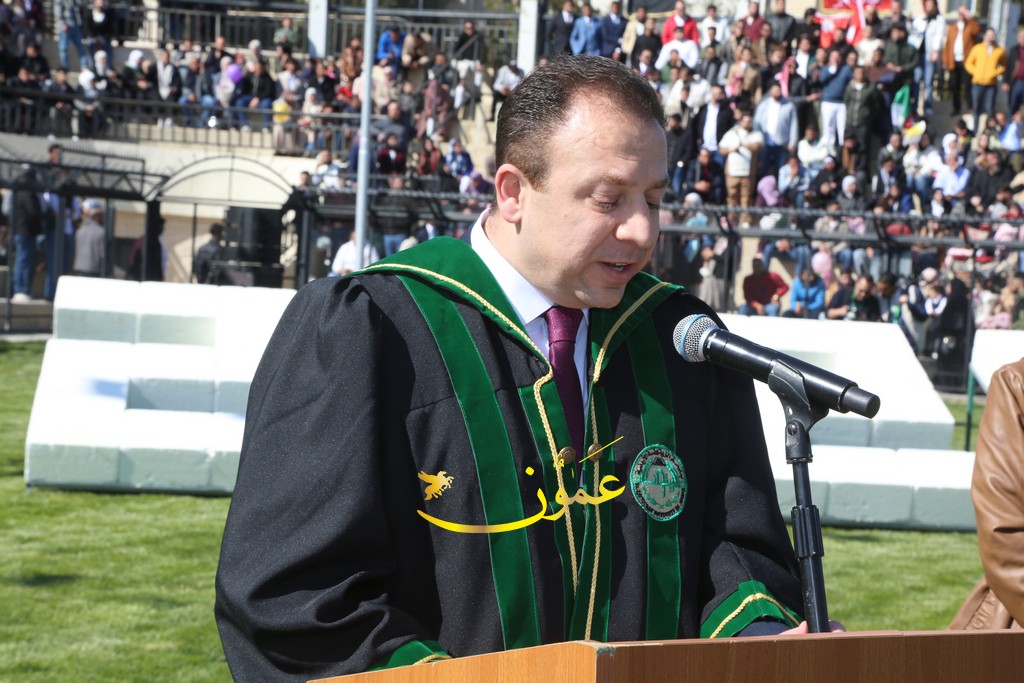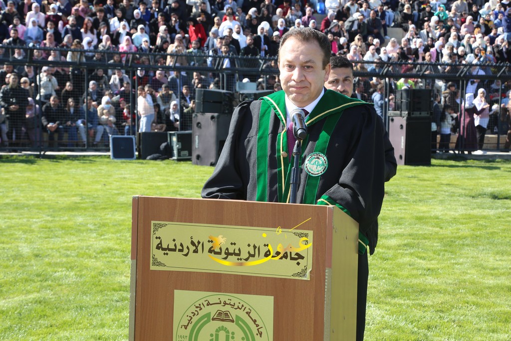 وفي كلمته خلال الاحتفال، رحب الدكتور المجالي بالحضور قائلاً: "يطيب لي أن أرحب بكم أجمل ترحيب، ونحن نلتقي اليوم للاحتفاء بتخريج فوجٍ عزيزٍ من طلبة جامعتنا الغالية، جامعة تتجسد فيها كل معاني الصدق والعطاء والإخلاص في وطن تتضافر فيه جميع الجهود ليظل نموذجاً من نماذج الإباء والتقدم والازدهار".