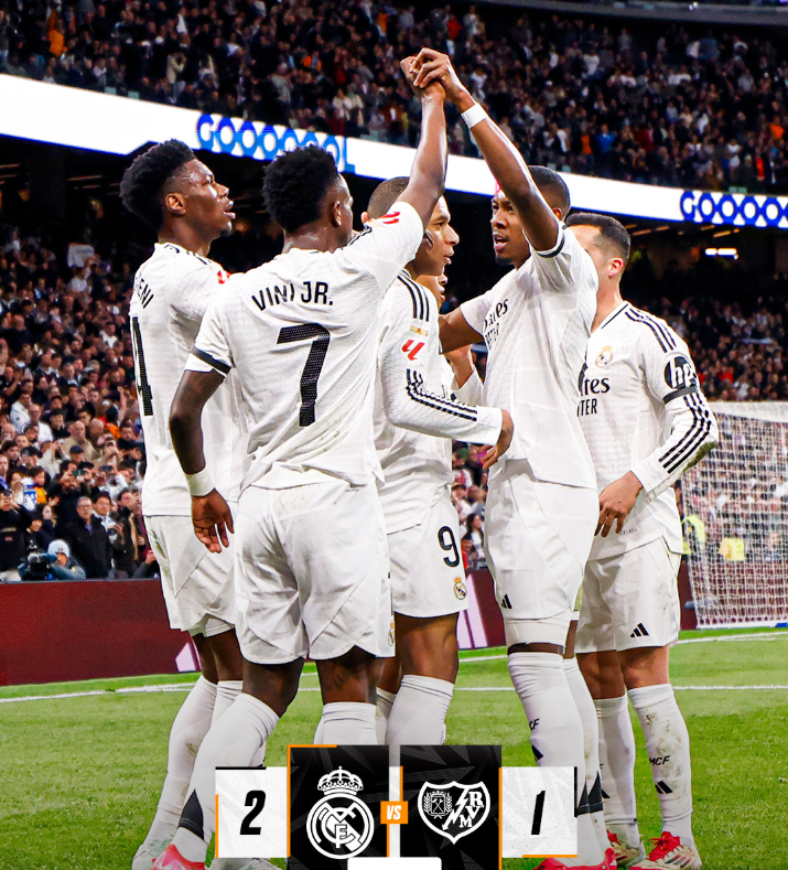 وسجل هدفي الميرينجي: كيليان مبابي وفينيسيوس جونيور في الدقيقتين 30 و34، بينما أحرز بيدرو دياز هدف رايو فاليكانو الوحيد، في الدقيقة (45+2).