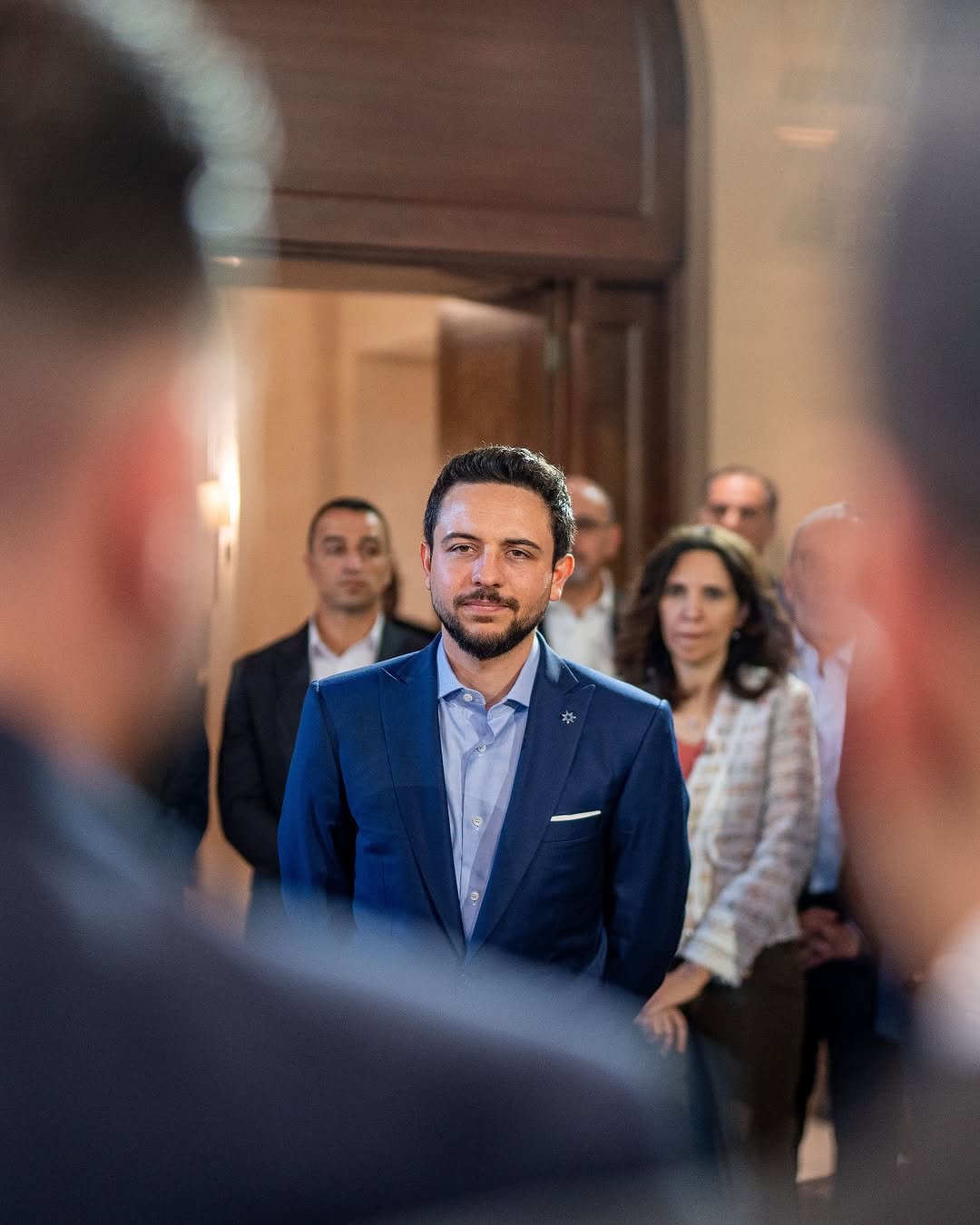 عمون - علق سمو الامير الحسين بن عبدالله الثاني، ولي العهد، على مأدبة الإفطار التي أقامها لمجموعة من الشبان والشابات من خريجي الفوج الرابع لبرنامج "خطى الحسين" أحد برامج مؤسسة ولي العهد. |