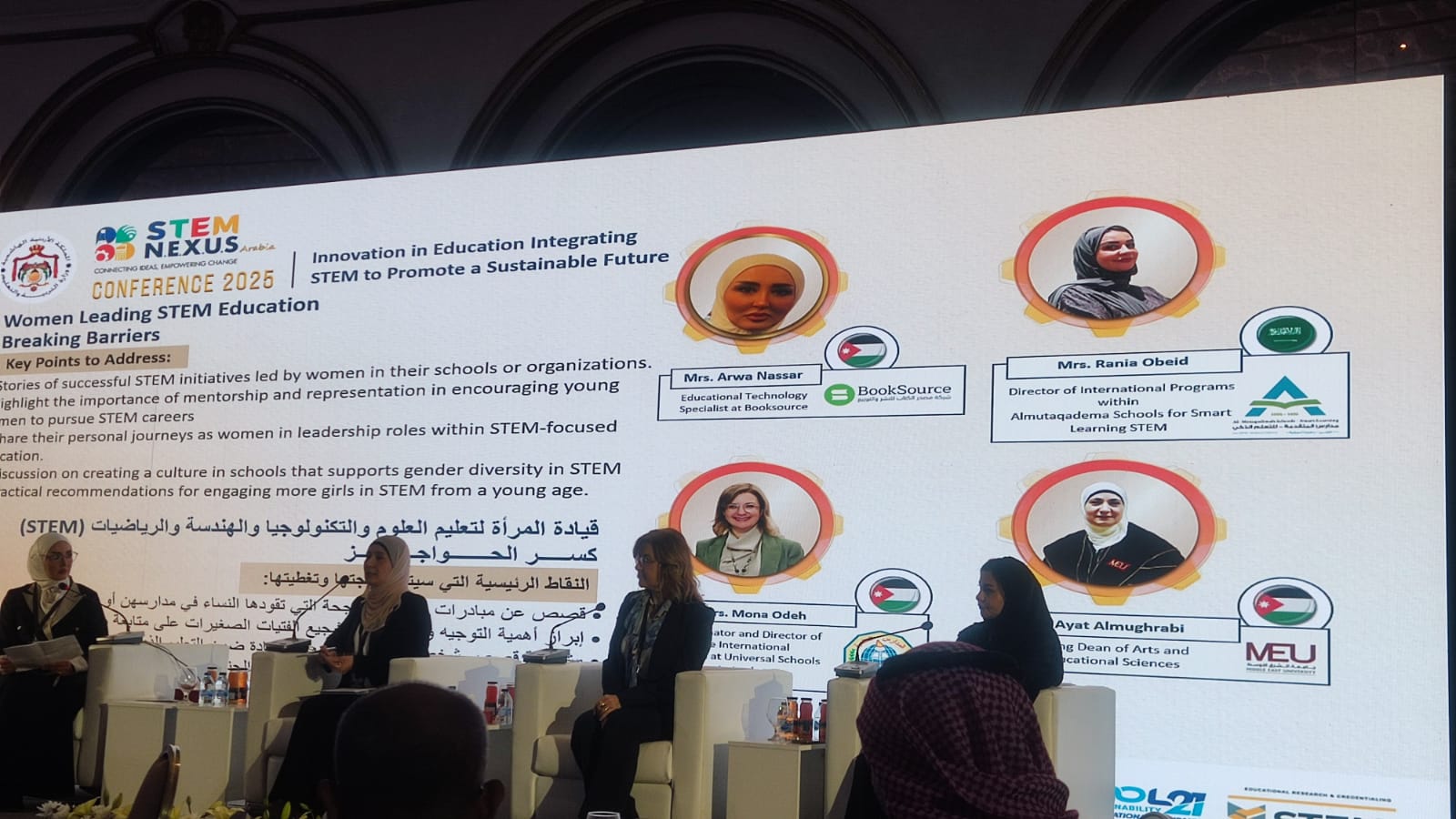 عمون - حظيت ورقة بحثية قدمتها عميدة كلية الآداب والعلوم التربوية في جامعة الشرق الأوسط الدكتورة آيات المغربي، باهتمام المشاركين في مؤتمر: “قيادة المرأة لتعليم العلوم والتكنولوجيا، والهندسة والرياضيات (STEM) / كسر الحواجز".