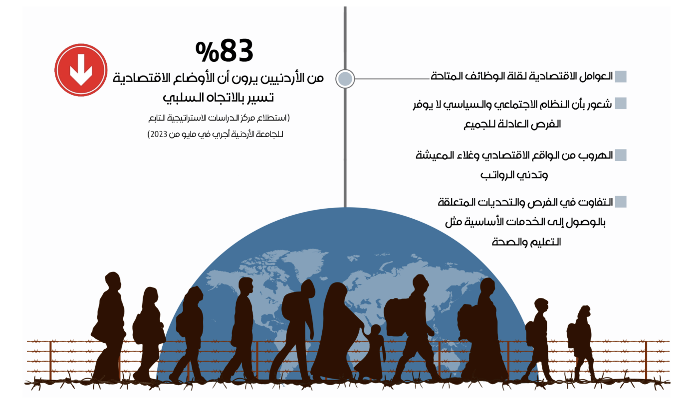 فقرابة نصف الأردنيين يفكرون بالهجرة، وفق استطلاع رأي.