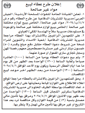 عطاء صادر عن القيادة العامة للقوات المسلحة الاردنية