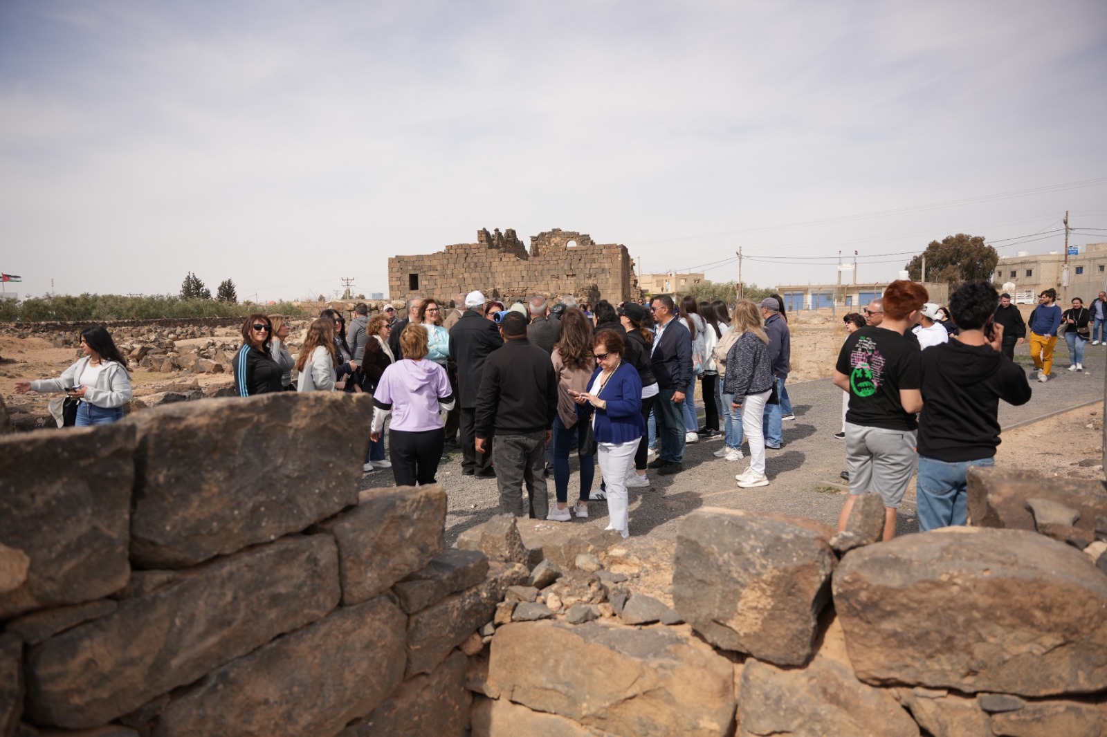واشتملت الزيارة على شروحات لتاريخ المدينة الملقبة بالواحة السوداء، وكذلك صلى الحضور في هذه البقعة التي كانت المسيحية منتشرة فيها بين السنوات حوالي 324 – 636 ميلادية. ومما ذكر في المعلومات أن الطاعون انتشر في المدينة فهجرها سكانها، وكذلك بعد الزلزال المدمر عام 747 ميلادية الذي أدى الى تدمير المدينة، فهجرها ساكنوها بشكل نهائي. وبقيت مهجورة لحوالي 1100 سنة حتى سكنها الدروز في عام 1935 ميلادية، لكنهم هجروها بعد ذلك إلى الأزرق، لكن أعيد سكن المنطقة بعد عام 1950م من قبل مجموعة من القبائل البدوية، فبنيت قرية تطورت الآن إلى بلدة كبيرة. وأكمل الحضور رحلتهم إلى كنيسة القديس يوسف للاتين في المفرق، حيث استمعوا من الشماس حازم النمري الى نبذة عن تاريخ الرعية التابعة للبطريركية اللاتينية والتي تأسست سنة 1939 وكان المطران الراحل نعمة السمعان أول كاهن فيها.