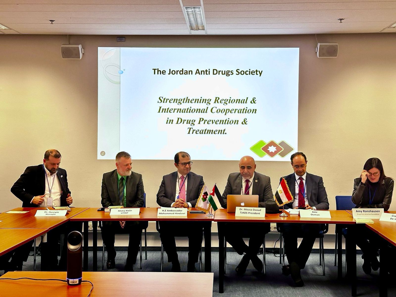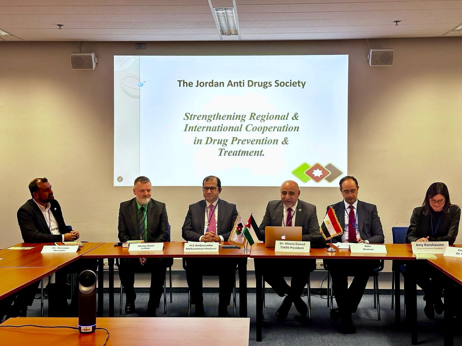 عمون - عقدت الجمعية الأردنية لمكافحة المخدرات فعاليتها السنوية بعنوان “تعزيز التعاون الإقليمي والدولي لمكافحة المخدرات” في مقر الأمم المتحدة في فيينا خلال الدورة الثامنة والستين للجنة مخدرات الأمم المتحدة (CND 68)، تحت رعاية السفير محمد الهنداوي، رئيس البعثة الدائمة لدى الأمم المتحدة.
