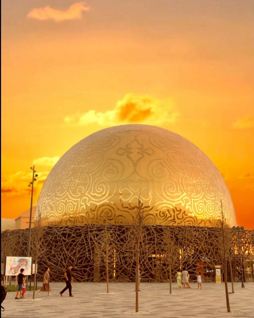 جوهرة المجمع السياحي "كارافانسراي" هو مسرح الفيديو. لا يوجد سوى 20 متحفًا من هذا النوع في العالم، وواحد منها يقع في آسيا الوسطى. يتعرف ضيوف المجمع الإعلامي على تاريخ وثقافة كازاخستان بتنسيق 8D. تم تصميم المبنى على شكل بيضة ذهبية موضوعة في عش.