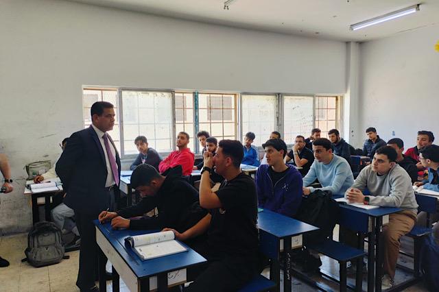 وفي سياق متصل، قام الدكتور السّلامات بزيارة ميدانية إلى مدرسة المرقب الثانوية للبنين، حيث اطلع على سير العملية التعليمية في المدرسة، والتقى بالكوادر الإدارية والتدريسية، وكذلك بالطلبة.