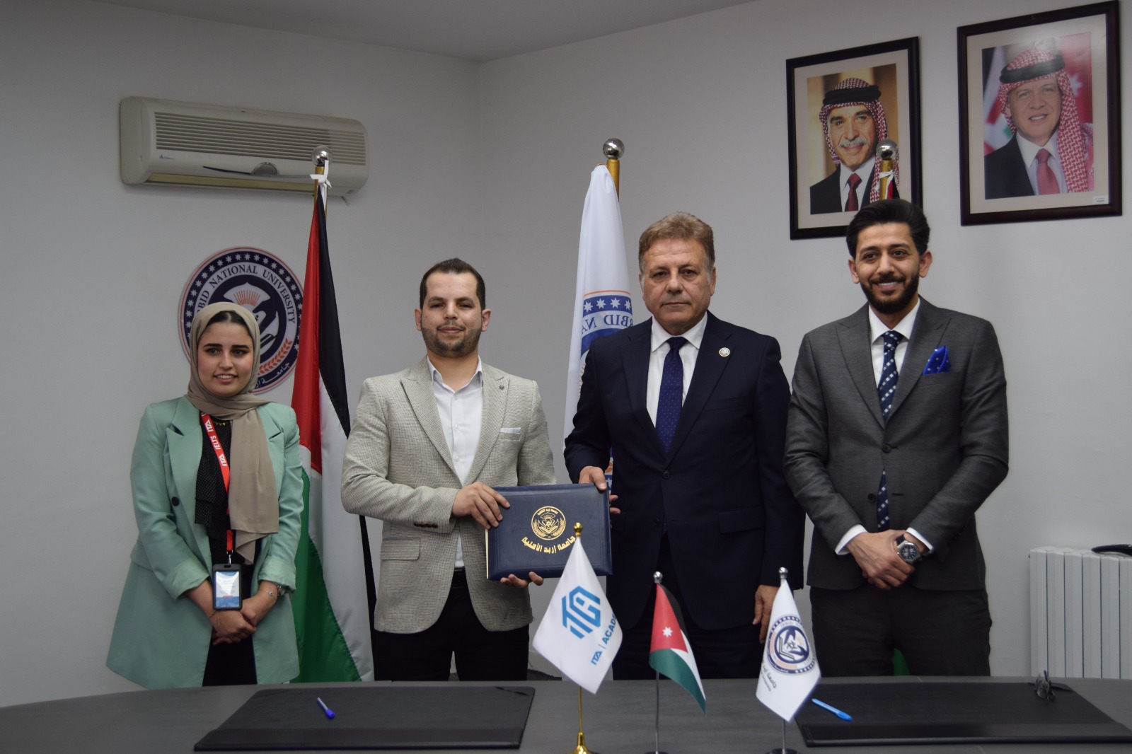 عمون - ضمن رؤيتها الطموحة لتعزيز المهارات الرقمية لطلبتها وتأهيلهم لمتطلبات سوق العمل المحلي والدولي، وقّعت جامعة إربد الأهلية اتفاقية تعاون أكاديمي نوعية مع مركز الجمحاوي للتكنولوجيا والتدريب ITA ACADEMY، تهدف إلى عقد برامج ودورات تدريبية وامتحانات دولية معتمدة لشهادة IC3، التي تُعد واحدة من أهم الشهادات العالمية في مجال المهارات الرقمية الأساسية، وقّعها عن الجامعة الأستاذ الدكتور ماجد أبو ازريق/ رئيس الجامعة، وعن المركز المهندس علاء الجمحاوي/ المدير العام لـ ITA ACADEMY، بحضور كل من الدكتور ثائر عجولي/ مدير مركز الاستشارات والتدريب وخدمة المجتمع في الجامعة، والسيدة دانا صبيحي/ مديرة قسم التطوير المؤسسي في المركز.
