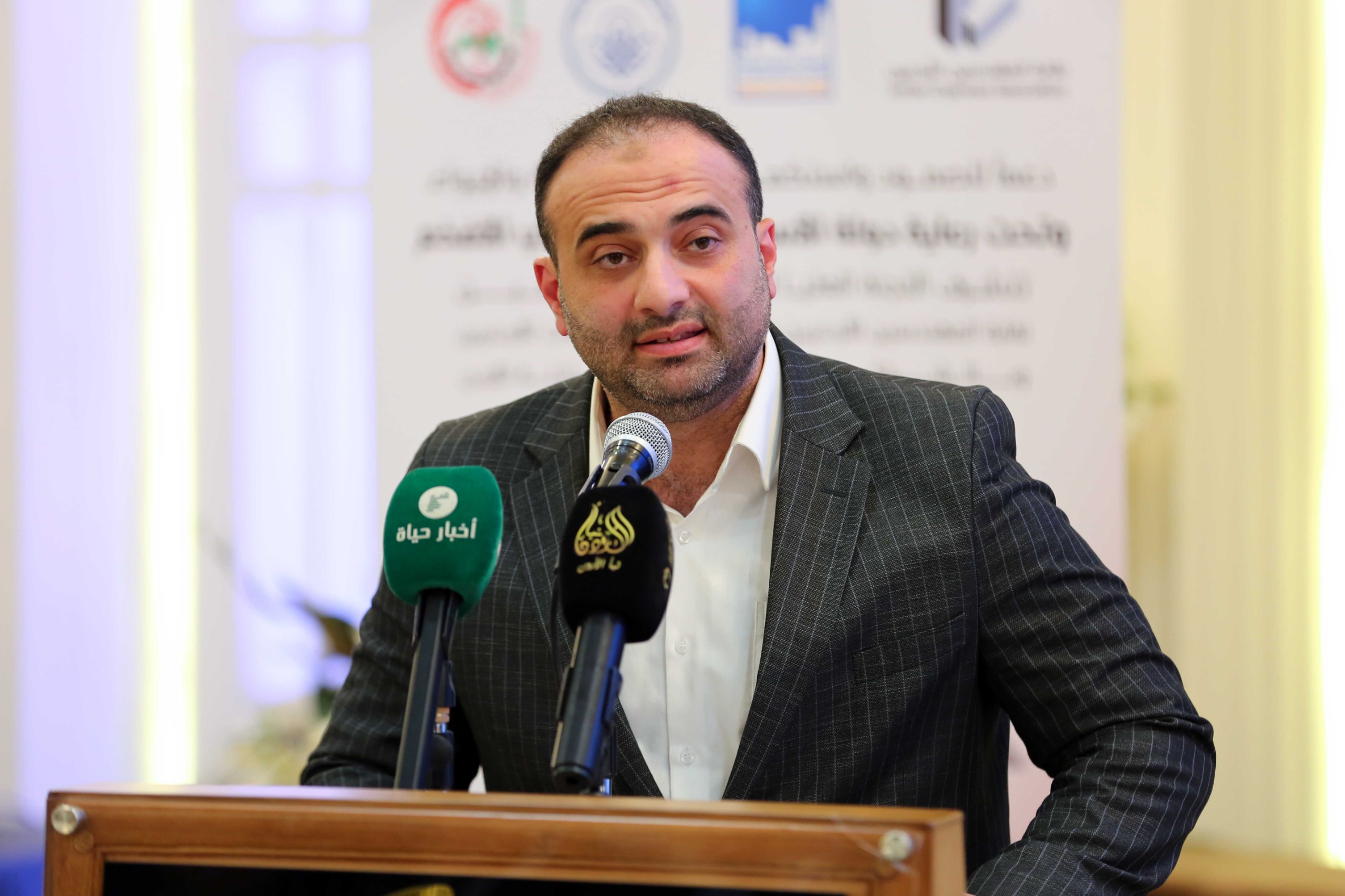 وأعلن عن تبرع المقاولين من خلال نقابة المقاولين بمجموعة من الاليات والمعدات لصالح غزه وذلك استمرارا للدور الانساني الذي قامت به النقابة ومنتسبيها منذ اليوم الاول للعدوان، وتبرع بقيمة 200 ألف دينار أردني، وبين أن مقاولين تبرعوا بالياتهم بمدد متفاوتة ومنهم من تبرع بها كاملة.