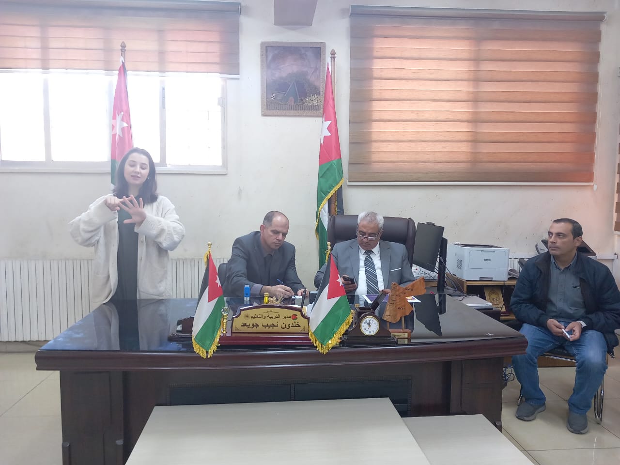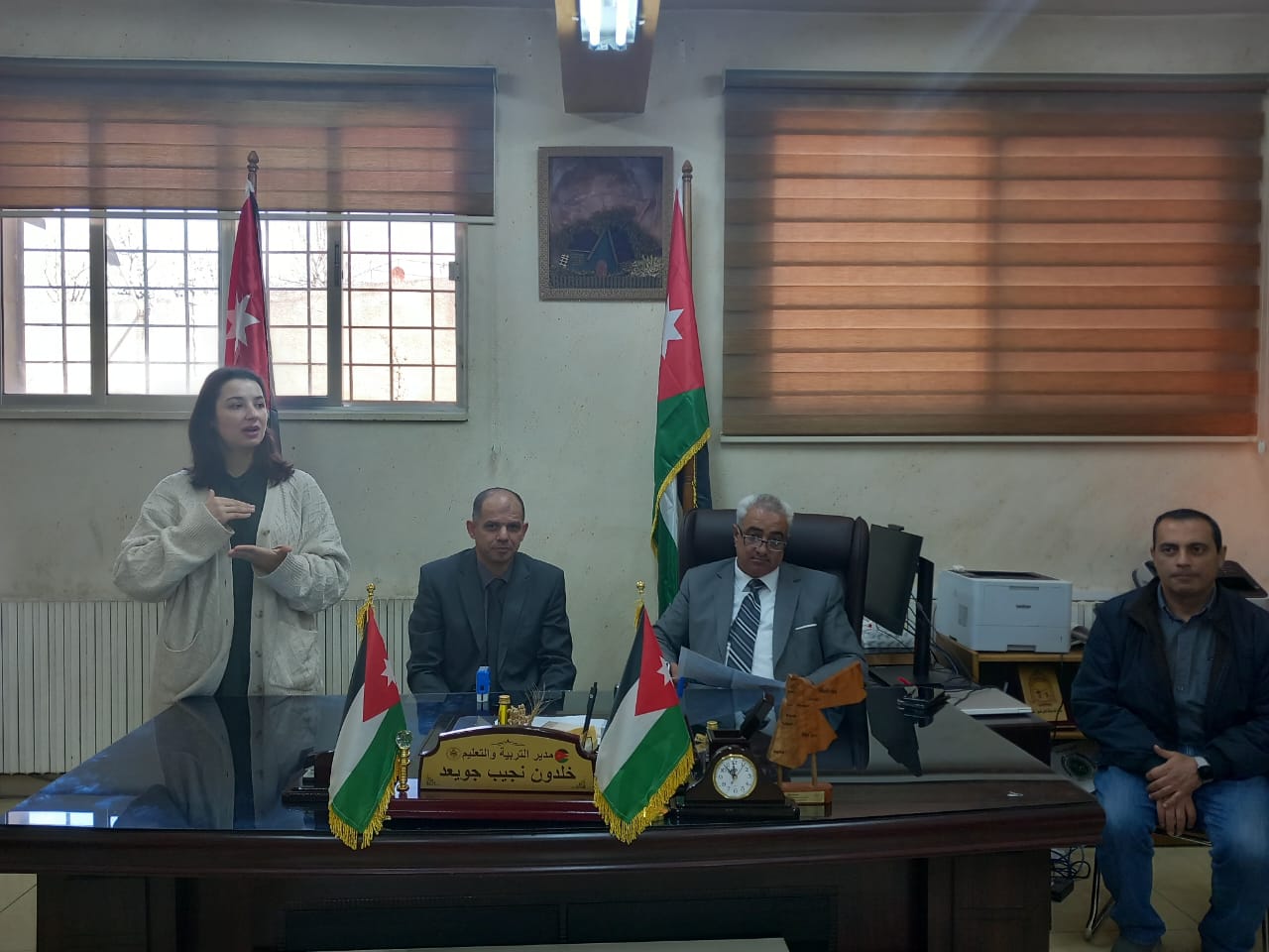 عمون - ترأس مدير التربية والتعليم لمحافظة عجلون خلدون جويعد في مكتبه لقاء مشتركا لمديري المدارس التي يُنفذ فيها مشروع Promise في المحافظة ومشروع ارتيليوشن العالمية ممثلا بمديرة المشروع آيات أسعد وبالتعاون مع وزارة التربية والتعليم والتعاون الدولي الألماني للتعليم الدامج GIZ بحضور مدير الشؤون التعليمية الدكتور أويس الصمادي ورئيس قسم التعليم العام عبدالله الصمادي ومشرف التربية الخاصة عامر حداد ومستشارة التعليم الدامج في المديرية الدكتورة رغدة الزغول وعضو قسم النشاطات عبدالرحيم الصمادي. |