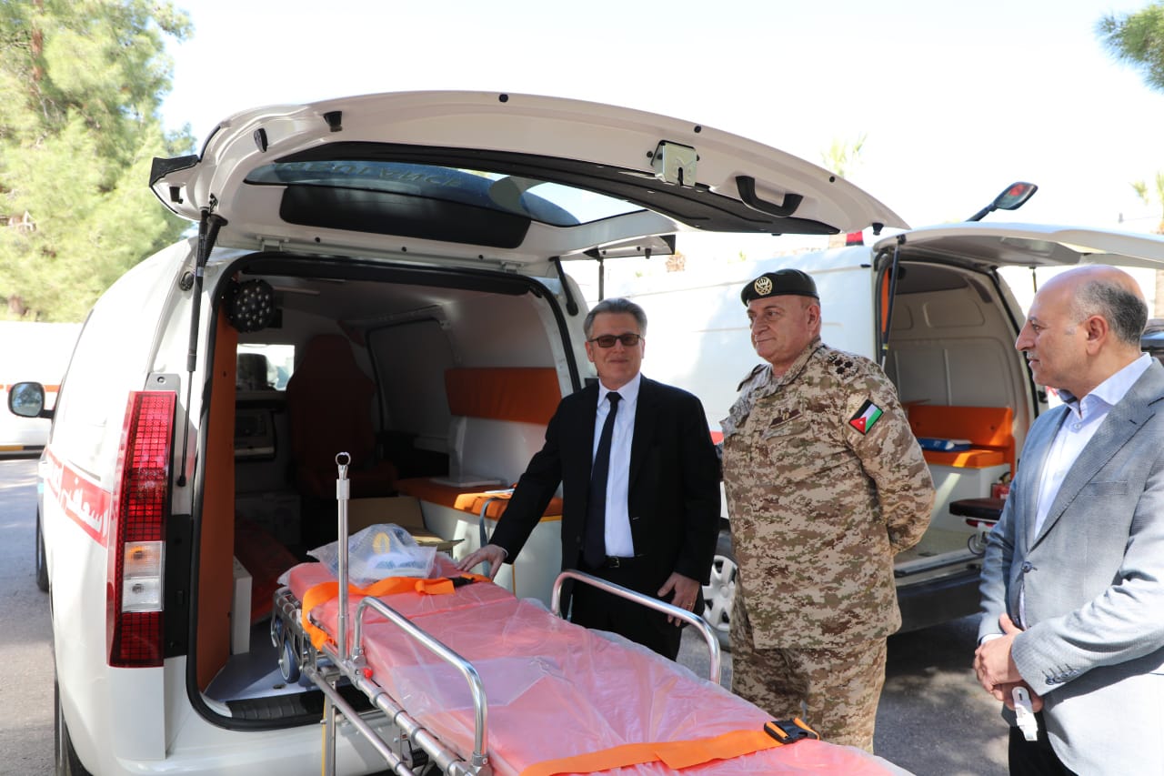عمون - تسلمت مديرية الخدمات الطبية الملكية، عشر سيارات إسعاف حديثة تبرعت بها الحكومة الفرنسية لمستشفياتها بحضور مدير عام الخدمات الطبية الملكية العميد الطبيب يوسف زريقات والسفير الفرنسي السيد أليكسي لوكوور غرانميزون في عمان.