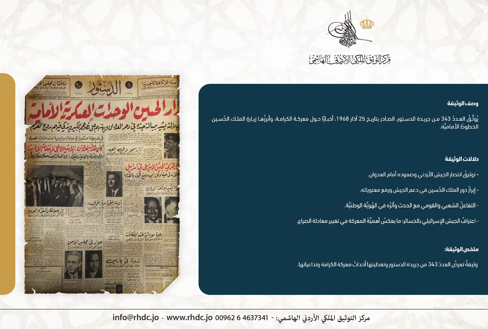 التوثيق الملكي يعرض وثيقة بمناسبة ذكرى معركة الكرامة20-03-2025 02:26 PM